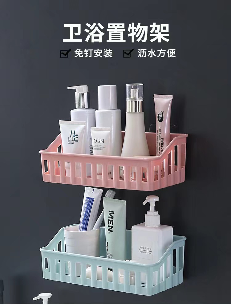 욕실 무타공 수납 선반 주방 유리벽 걸이형 잡화 수납 선반 욕실 수납 벽걸이형