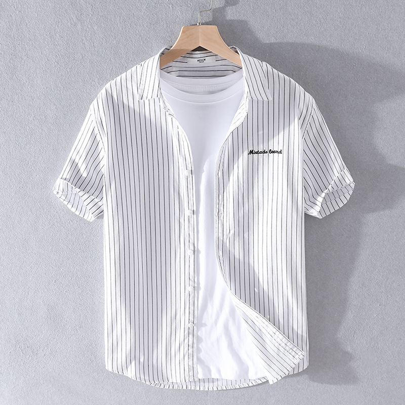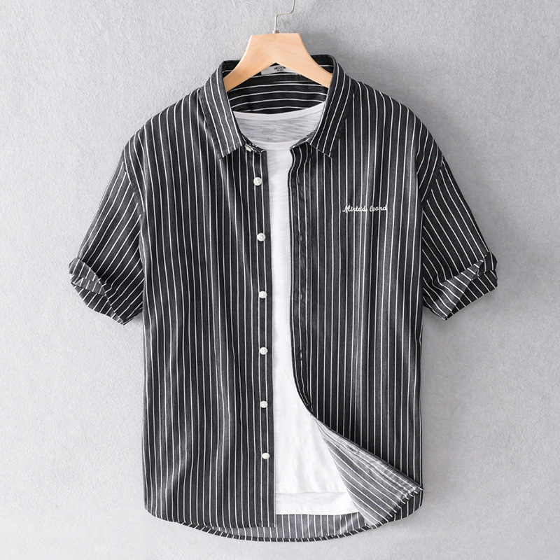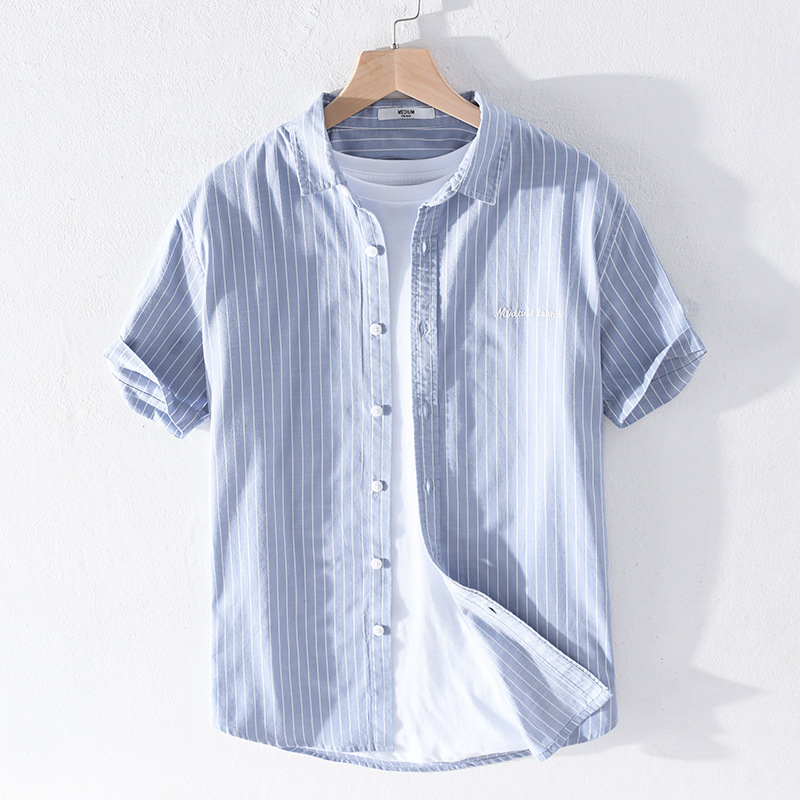 여름 남성 캐주얼 순면 스트라이프 셔츠 트렌디 남성 만능 잘생긴 트렌디 남성 순면 셔츠 예술적인 남성 307스토어 가기