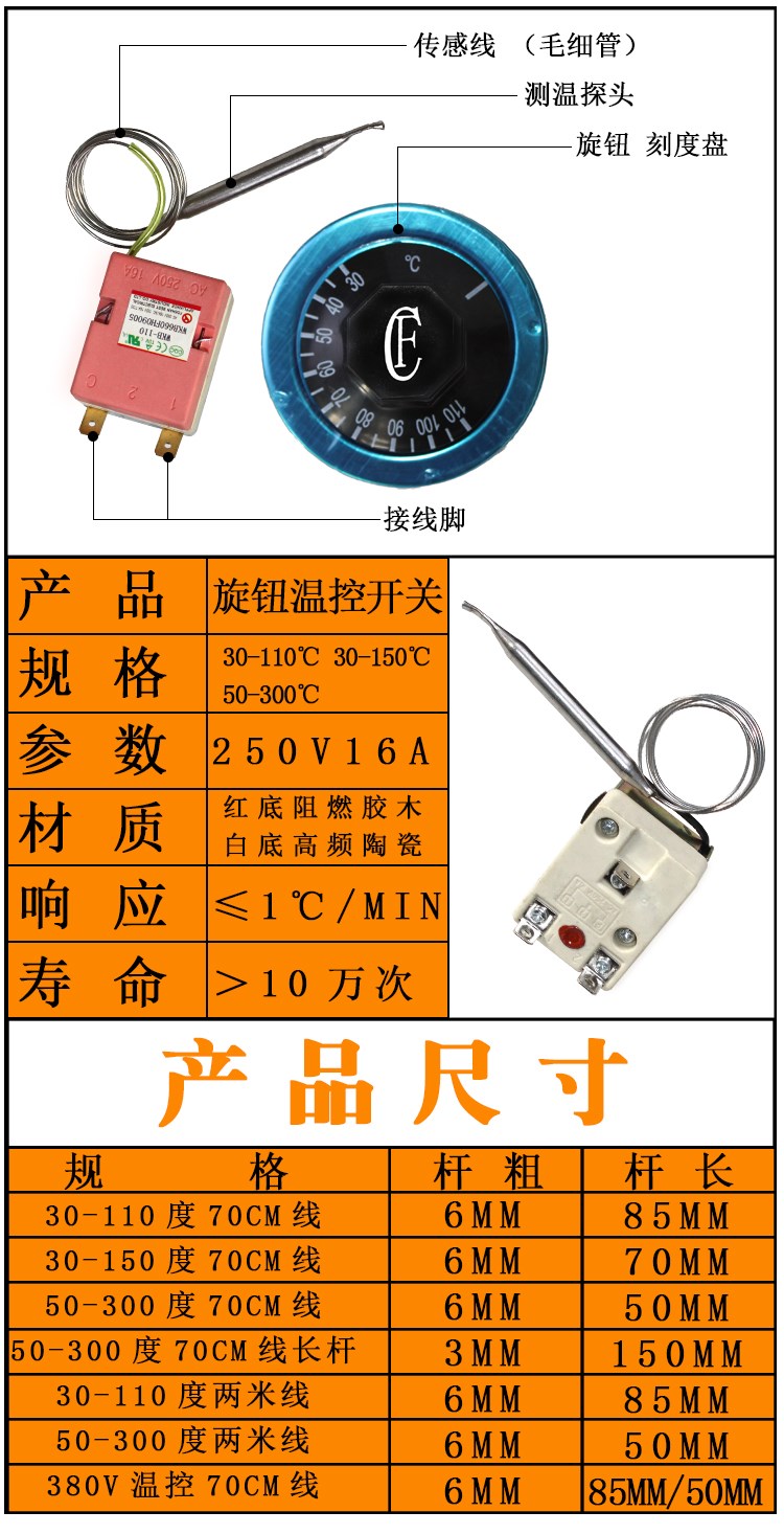 물 보일러 온도 제어 스위치 절연 테이블 조절 온도 조절기 오븐 프라이어 손잡이 스위치 110 도 300