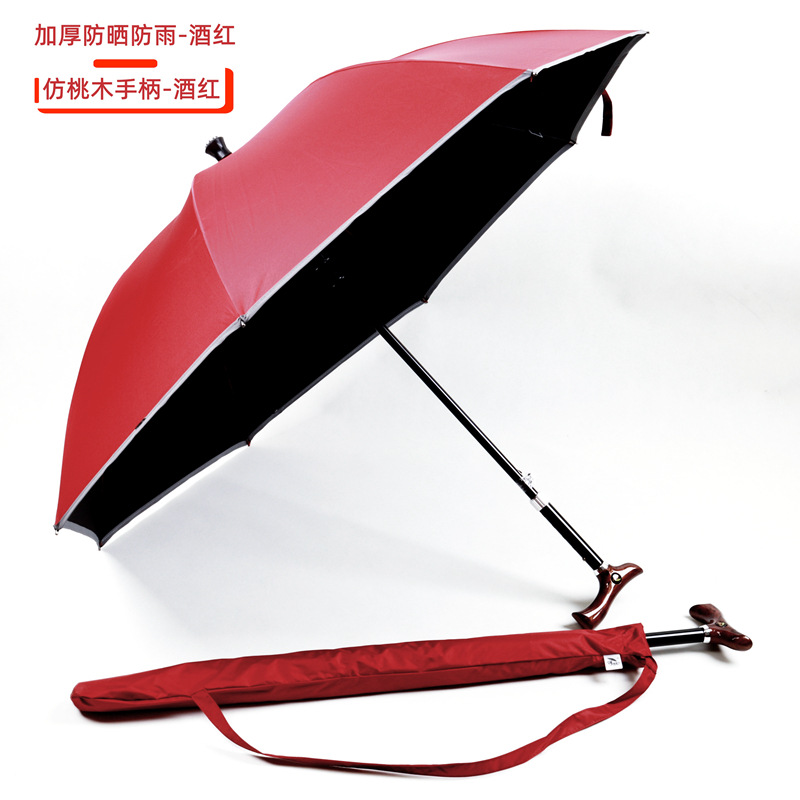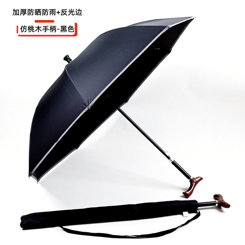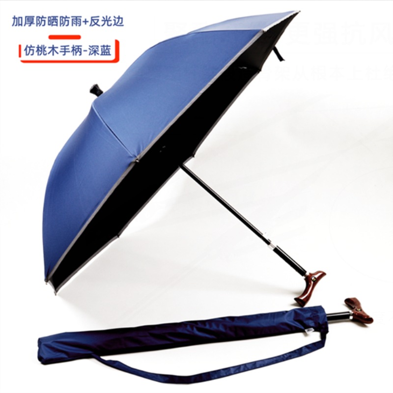 선물 우산 조정 가능한 목발 우산 긴 손잡이 다기능 자동 강화 미끄럼 방지 노인을위한 강한 등산 우산