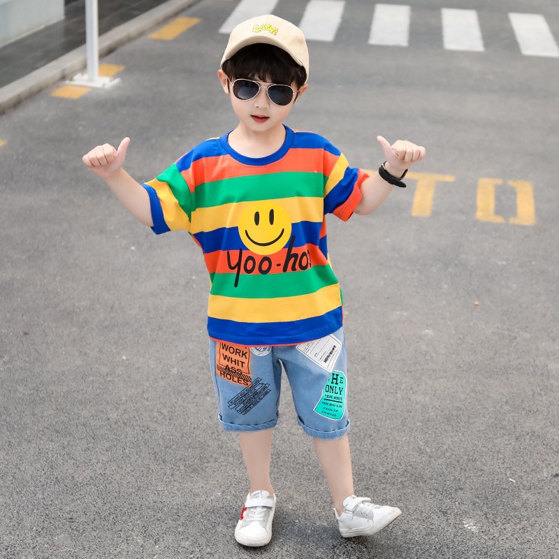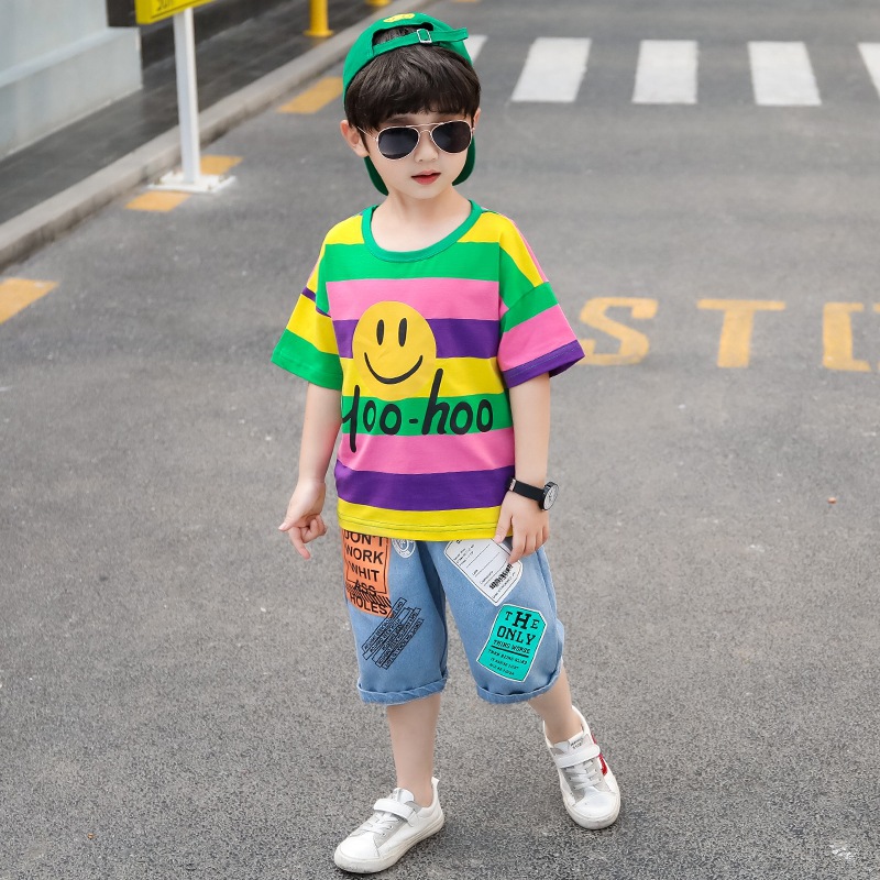 남아 여름 의류 세트 2023 new 3 세 아기 5 외국 스타일 한국어 버전 4 투피스 세트 8 아동 스트라이프 아동복스토어 가기