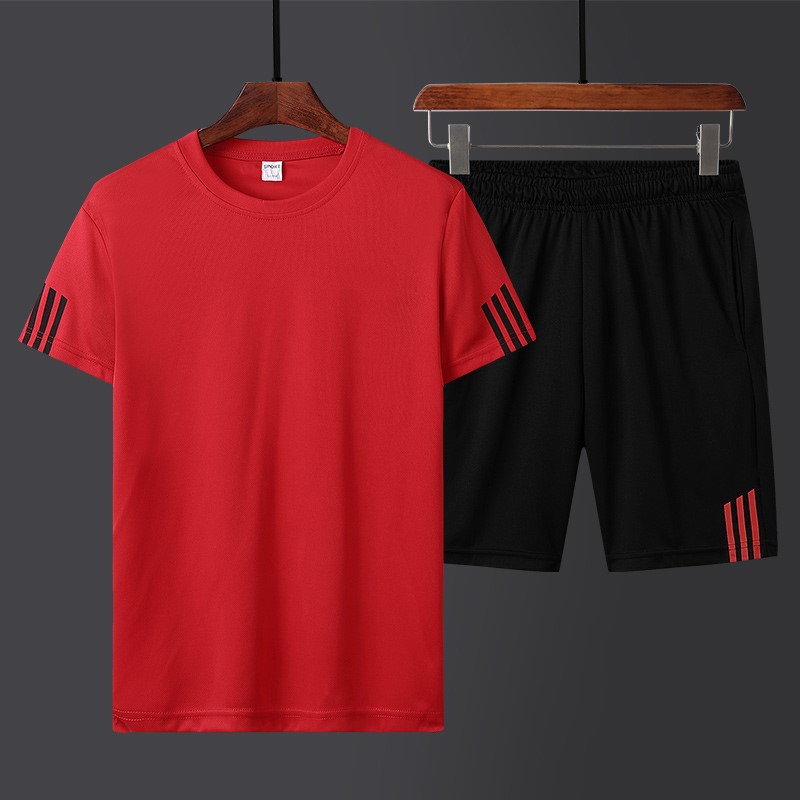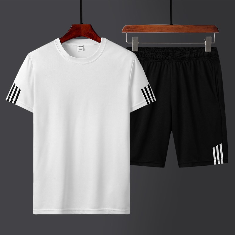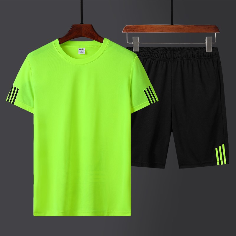 남성용 여름 러닝 운동복 정장, 루즈한 속건성 반팔 반바지 캐주얼 정장, 트렌디한 대형 대외 무역 정장스토어 가기