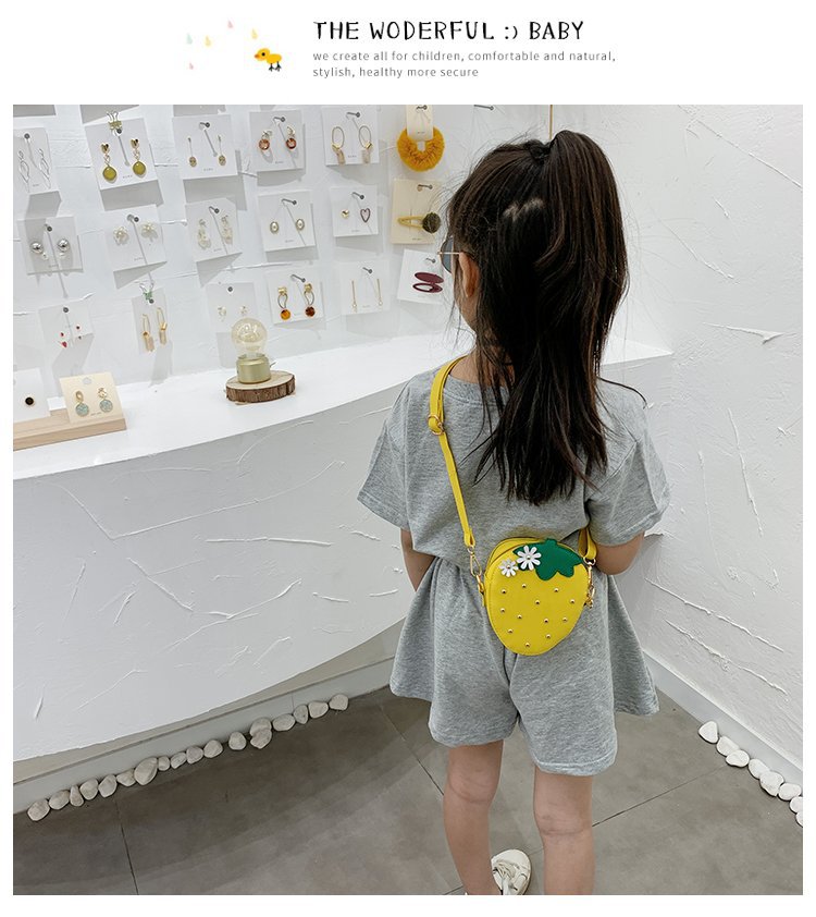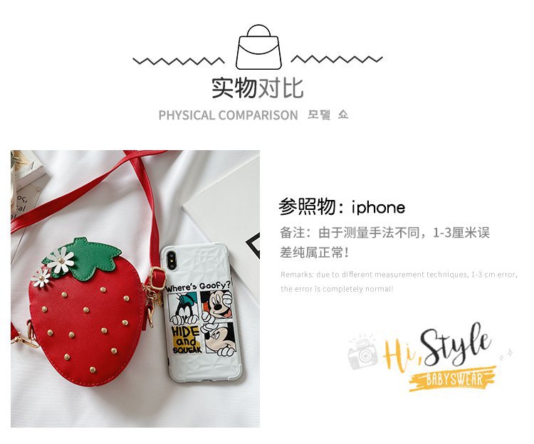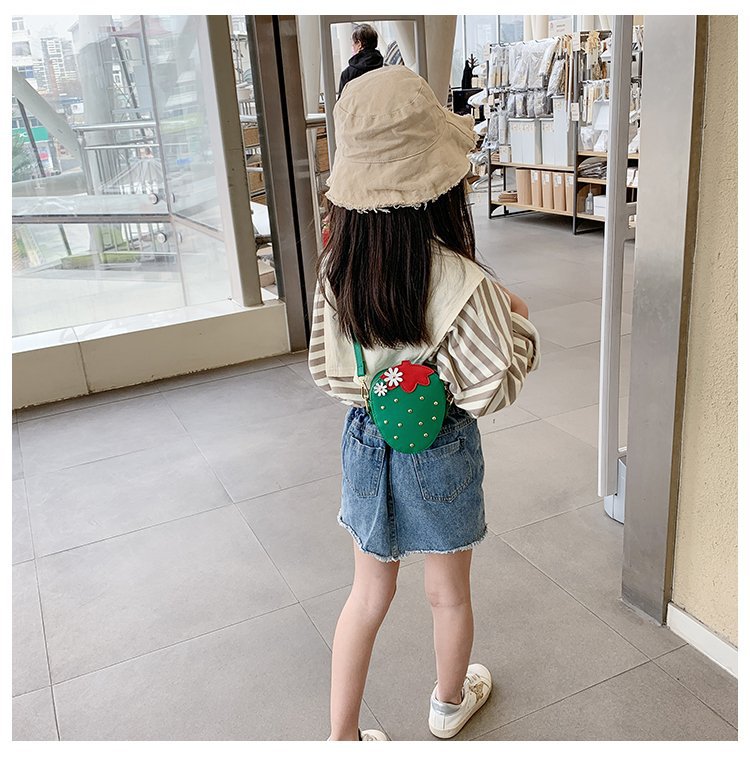 어린이 가방 2022 한국식 귀여운 만화 딸기 소녀의 싱글 백 패션 리벳 장식 아기의 동전 지갑스토어 가기