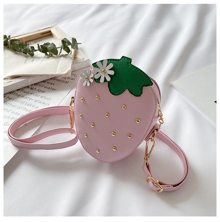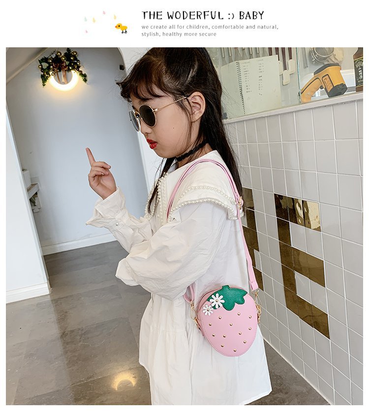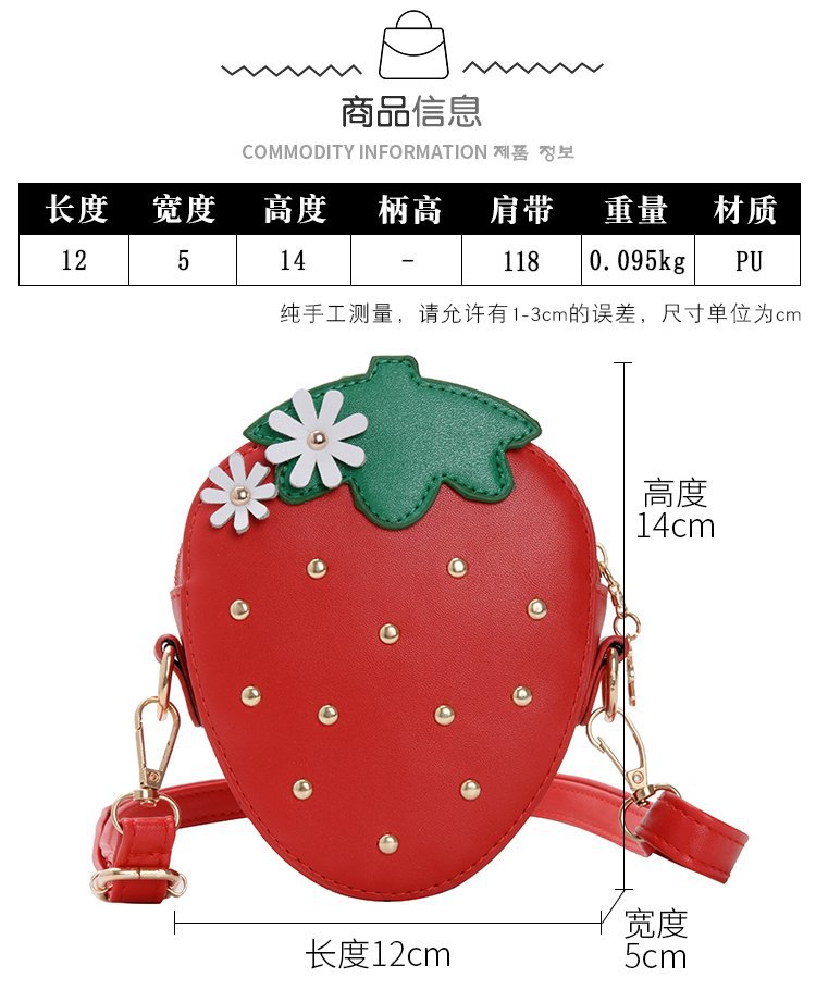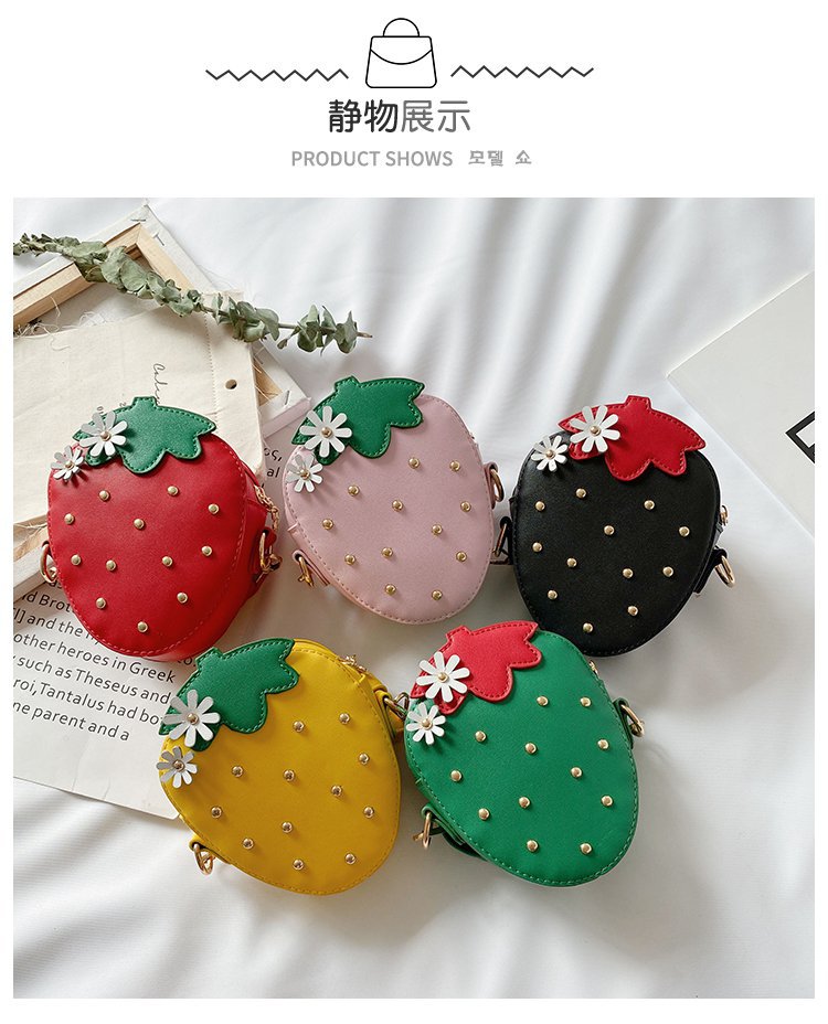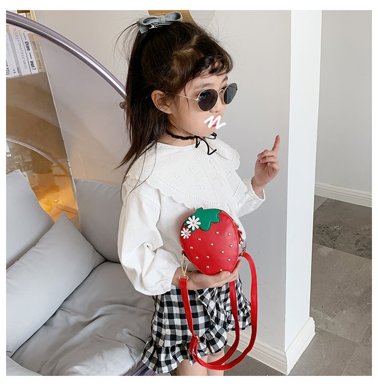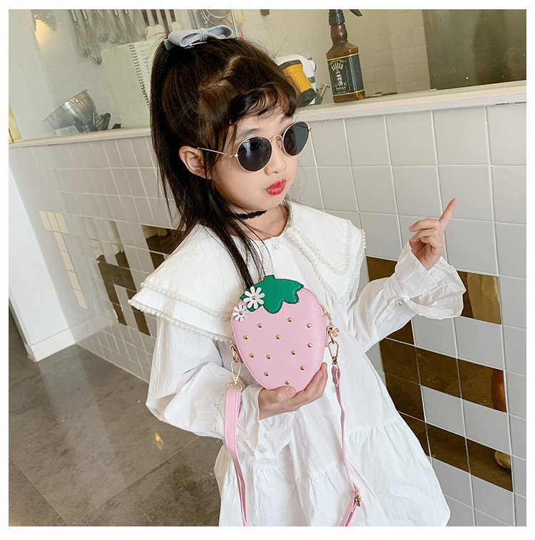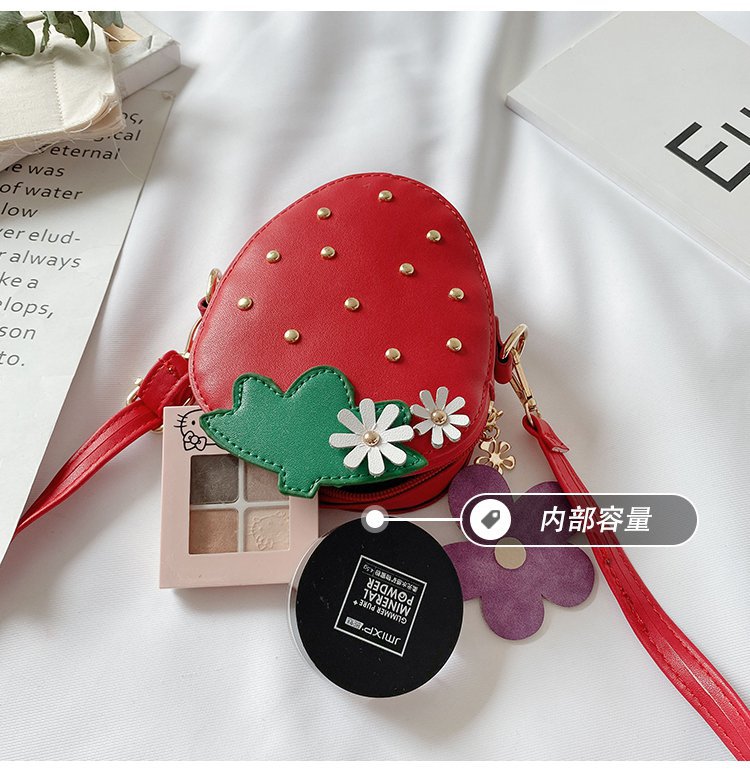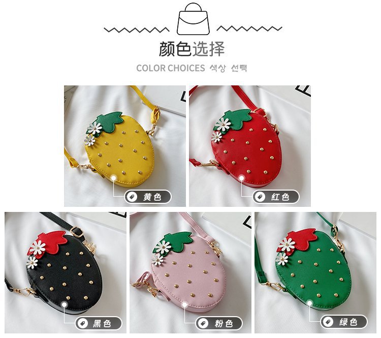 어린이 가방 2022 한국식 귀여운 만화 딸기 소녀의 싱글 백 패션 리벳 장식 아기의 동전 지갑
