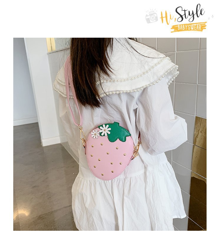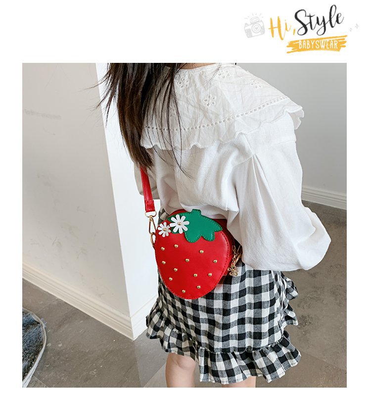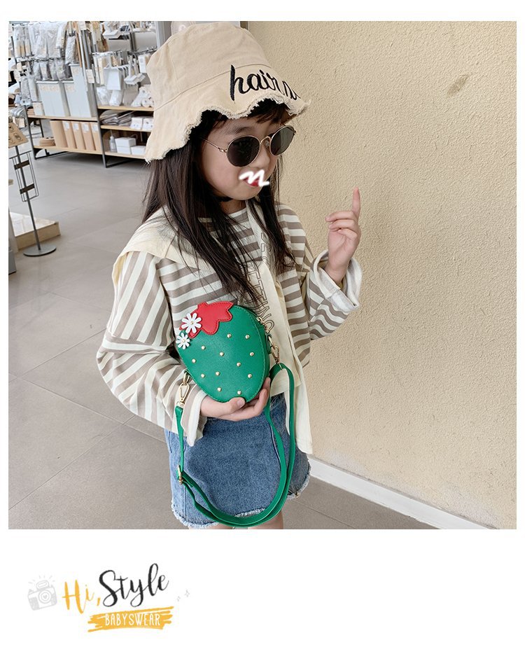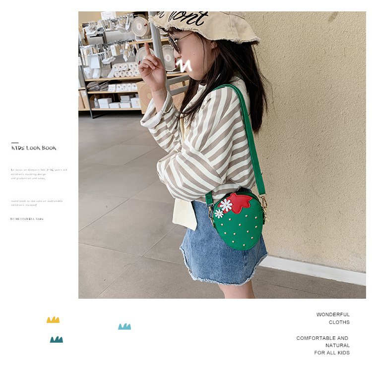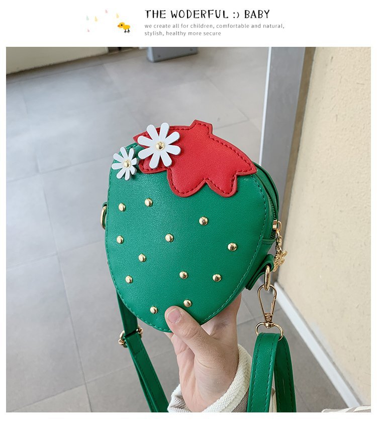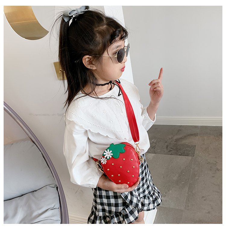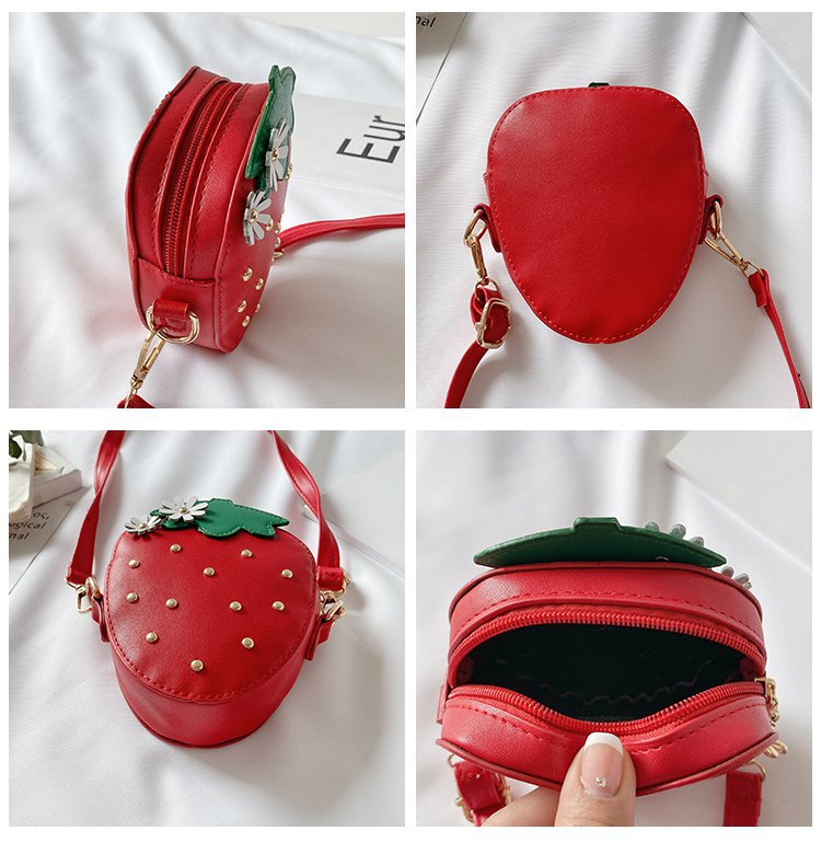 어린이 가방 2022 한국식 귀여운 만화 딸기 소녀의 싱글 백 패션 리벳 장식 아기의 동전 지갑