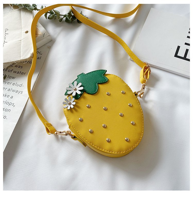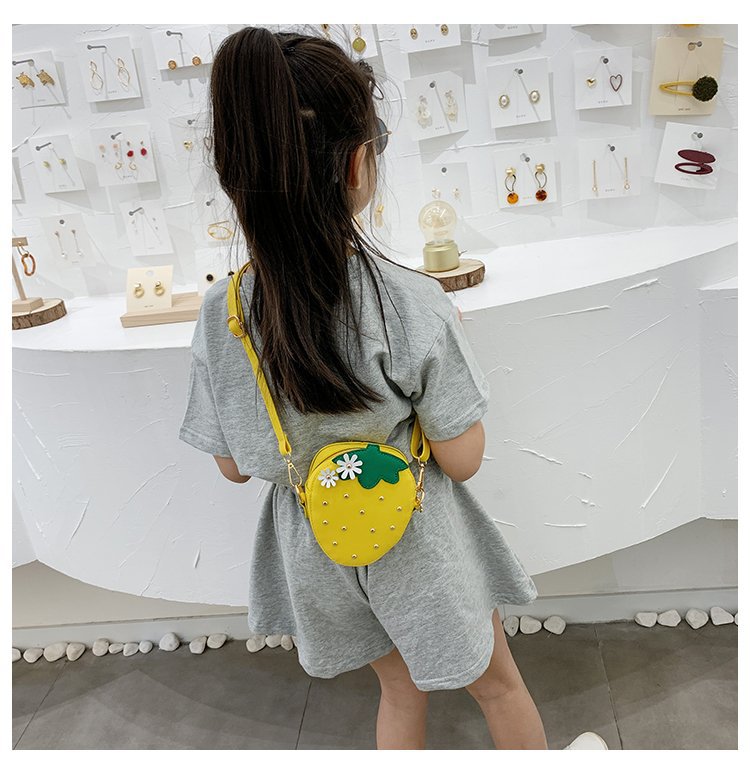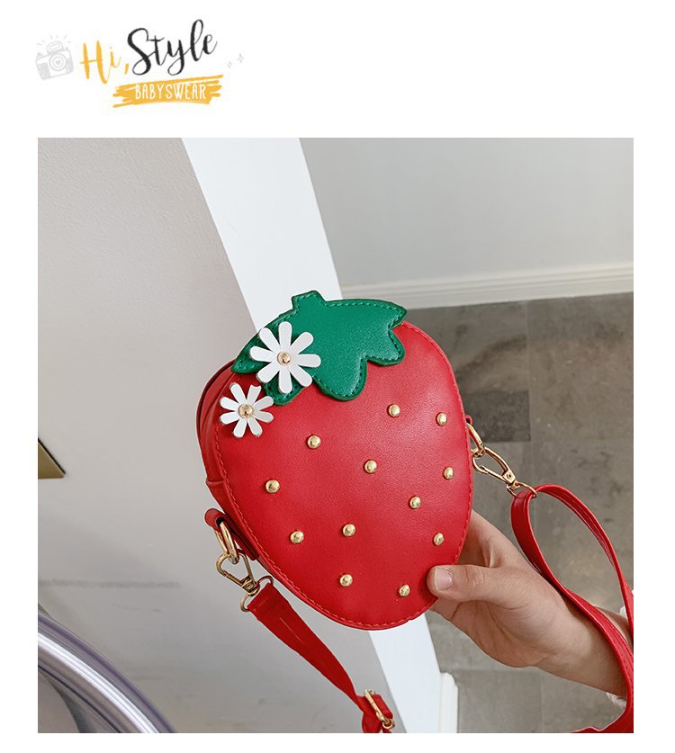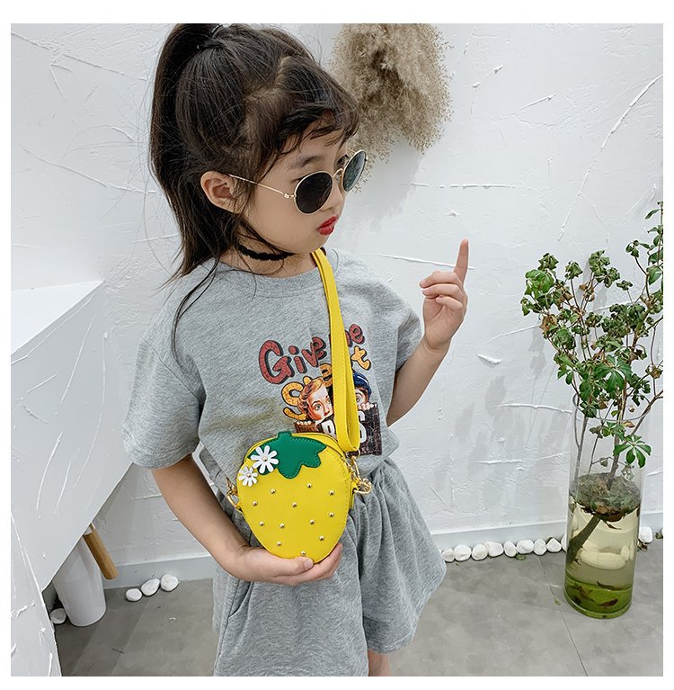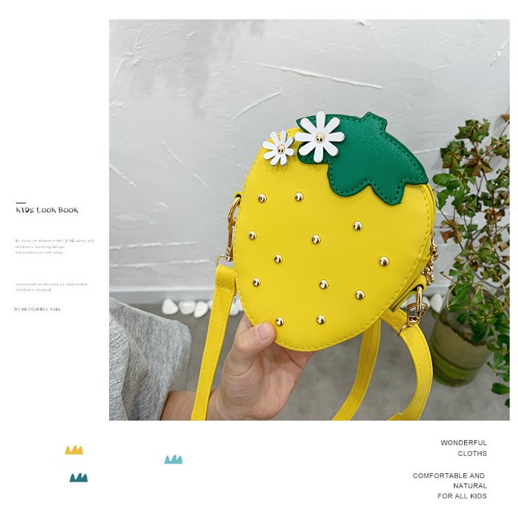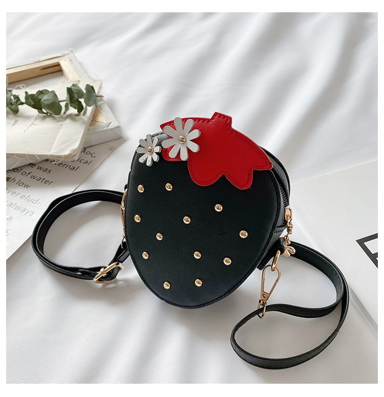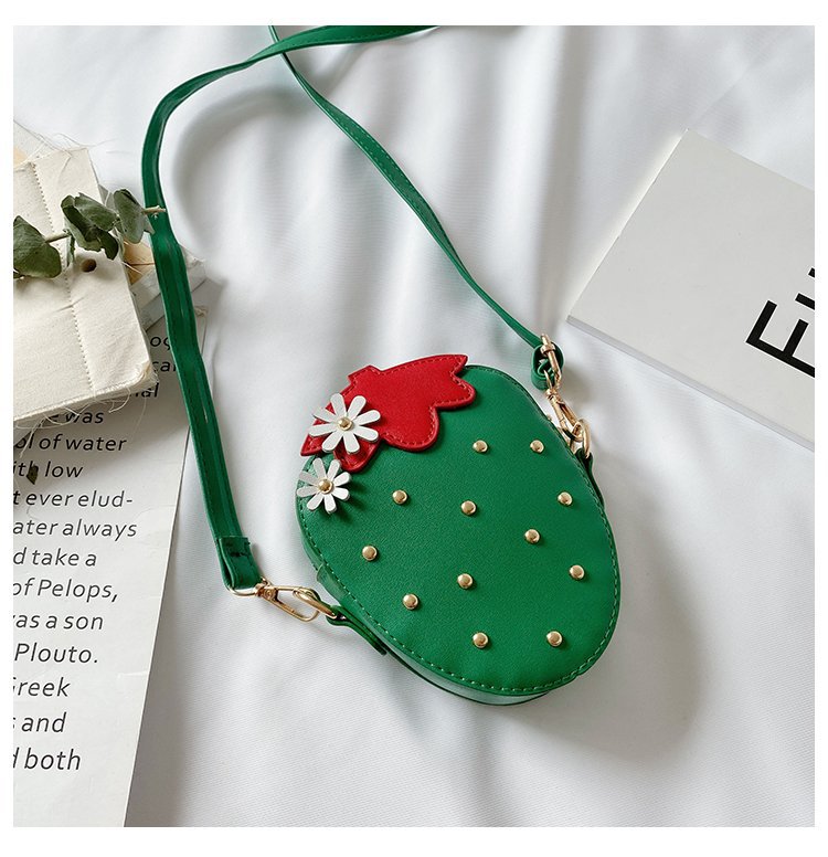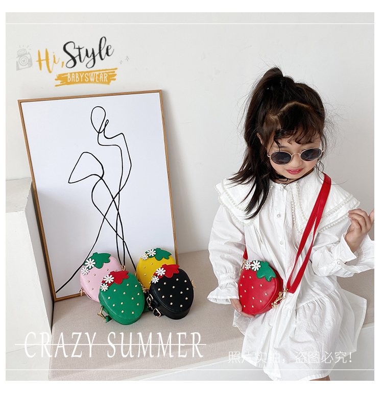 어린이 가방 2022 한국식 귀여운 만화 딸기 소녀의 싱글 백 패션 리벳 장식 아기의 동전 지갑