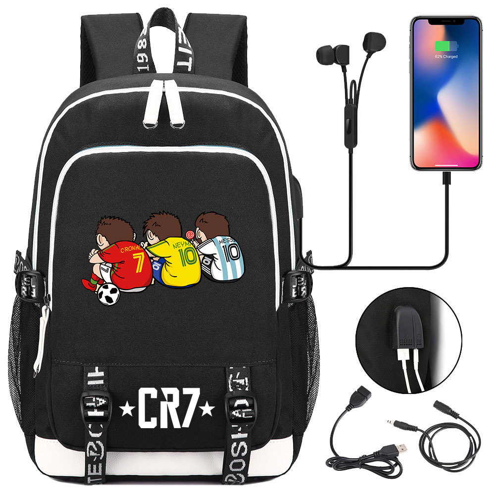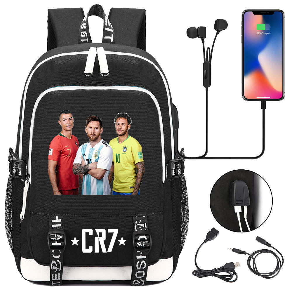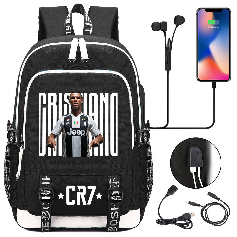 인기있는 축구 스타 C Luo 컬렉션 십대 책가방 USB 남성 및 여성 캐주얼 배낭