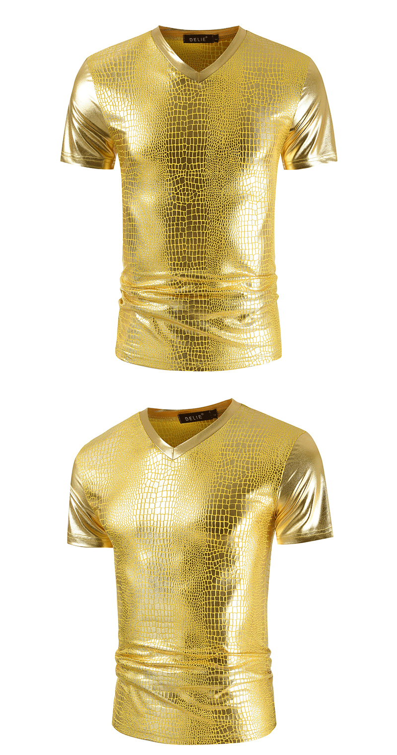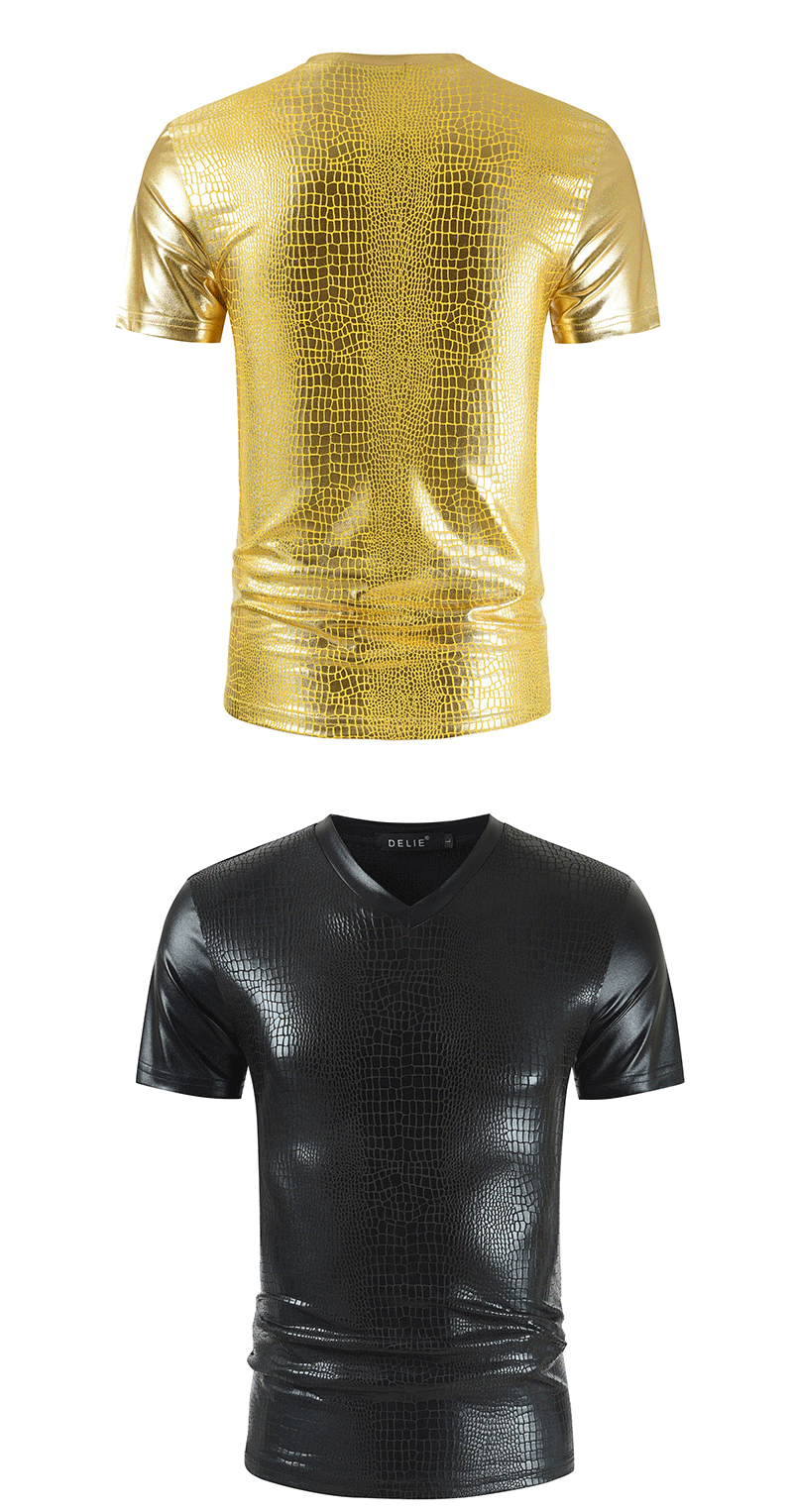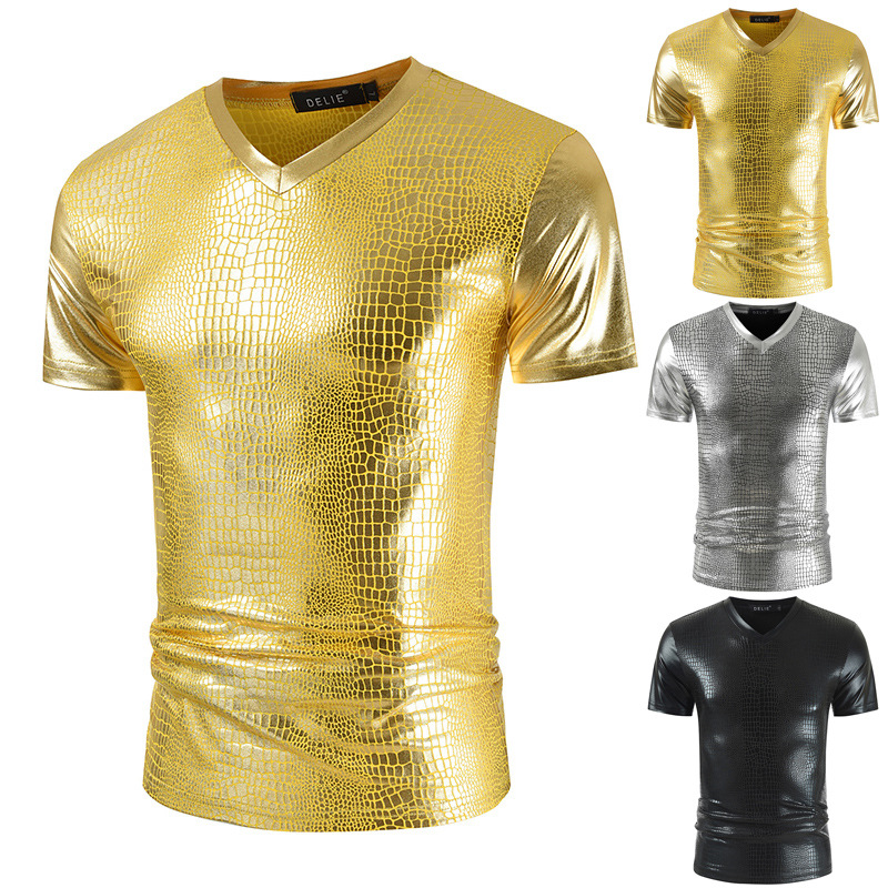 2023 여름 새로운 크로스 보더 V-넥 슬림핏 반팔 티셔츠 뱀가죽 패턴 트렌디 남성용 밝은 나이트 클럽 스타일 남성용 베이스 셔츠스토어 가기