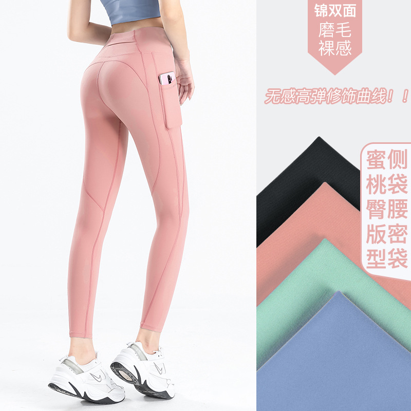 유럽과 미국 크로스 보더 복숭아 힙 피트니스 바지 스크럽 알몸 여름 스포츠 타이트 포켓 하이 웨이스트 힙합 요가 바지 여성용스토어 가기