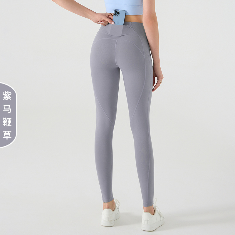 유럽과 미국 크로스 보더 복숭아 힙 피트니스 바지 스크럽 알몸 여름 스포츠 타이트 포켓 하이 웨이스트 힙합 요가 바지 여성용