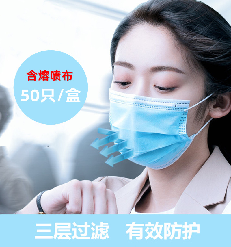 일회용 3 층 두꺼운 필터 마스크 보호 부직포 안티 스플래시 방진 통기성 민간 마스크 멜트 블로우 배치스토어 가기