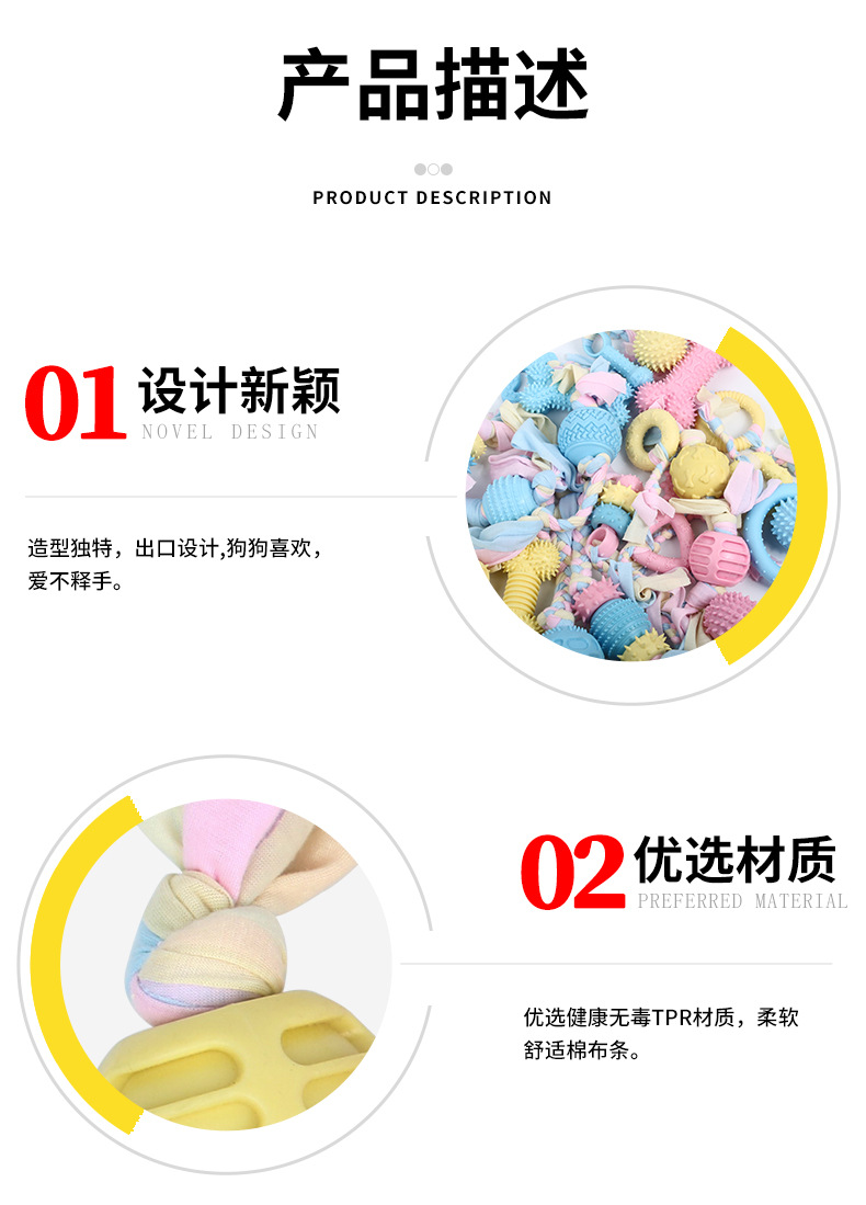 국경을 넘는 인기상품 강아지 장난감 내구성 강한 씹기 좋은 면 로프 애완동물 공 용품 애완견 아마존