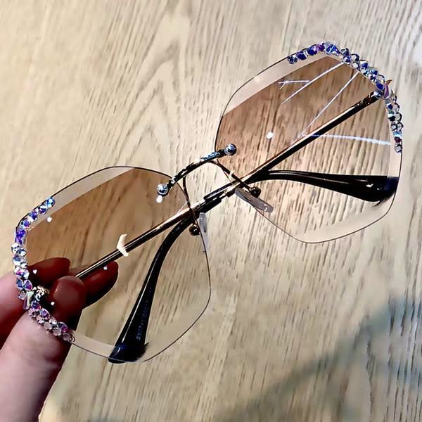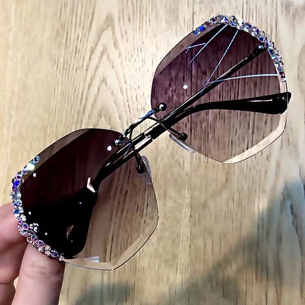 뉴스타일 선글라스 여성용 한국식 트렌디한 무테 크리스탈 트리밍 선글라스 여성용 자외선 차단 다이아몬드 박힌 선글라스스토어 가기
