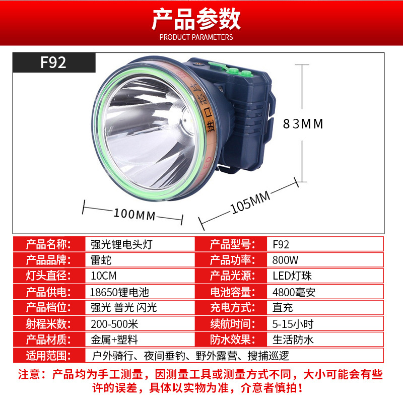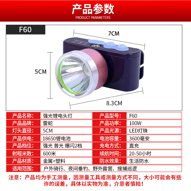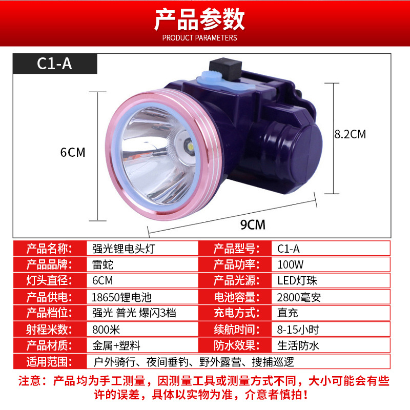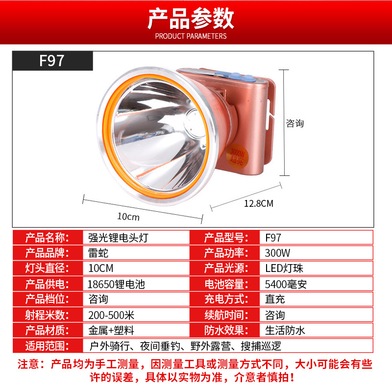 헤드 장착 낚시 전조등 야외 순찰 서치라이트 사이트 광부 램프 강광 충전 LED 리튬 배터리 조명 램프