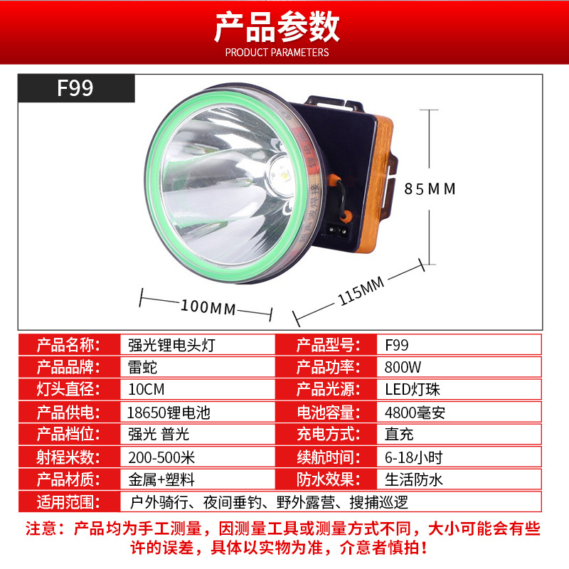 • F99-800W 3 리튬 배터리 100mm 방수 램프 링 화이트 라이트