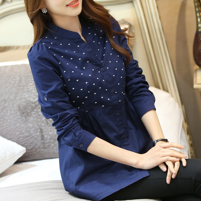 2020 봄과 가을 새로운 한국 스타일 셔츠 여자의 긴 소매 한국 스타일 중간 길이 꽃 셔츠 여자의 최고 플러스 사이즈 슬리밍스토어 가기
