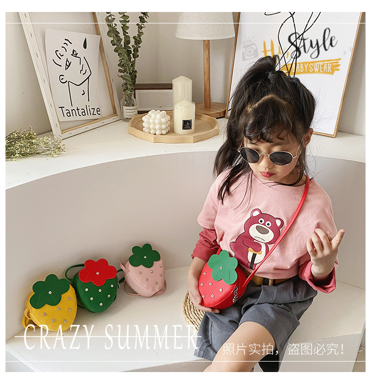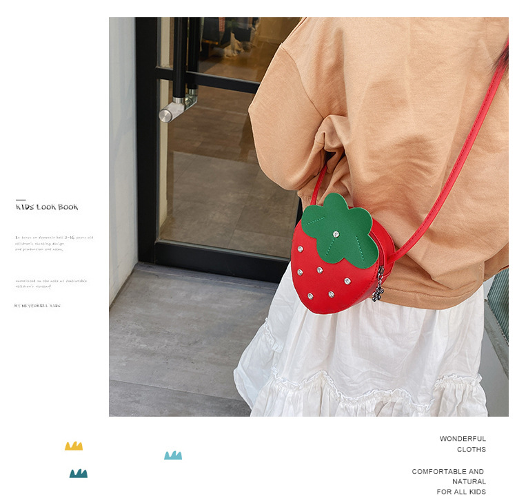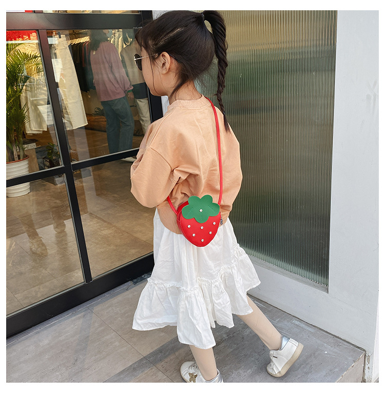 어린이 가방 숄더 크로스 바디 백 딸기 패션 작은 가방 트렌디 한 귀여운 어린 소녀 모든 일치 동전 지갑 여행 가방스토어 가기