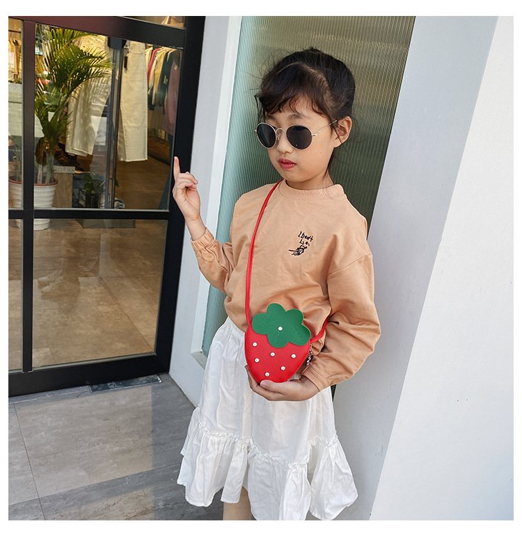 어린이 가방 숄더 크로스 바디 백 딸기 패션 작은 가방 트렌디 한 귀여운 어린 소녀 모든 일치 동전 지갑 여행 가방