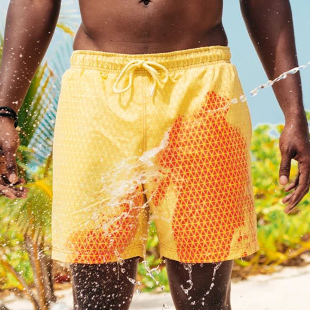 두꺼워진 신제품, 남성용 색상이 물에 노출되면 변하는 인기 비치 팬츠, 대형 온도 감지 색상이 변하는 멀티 컬러 수영복스토어 가기