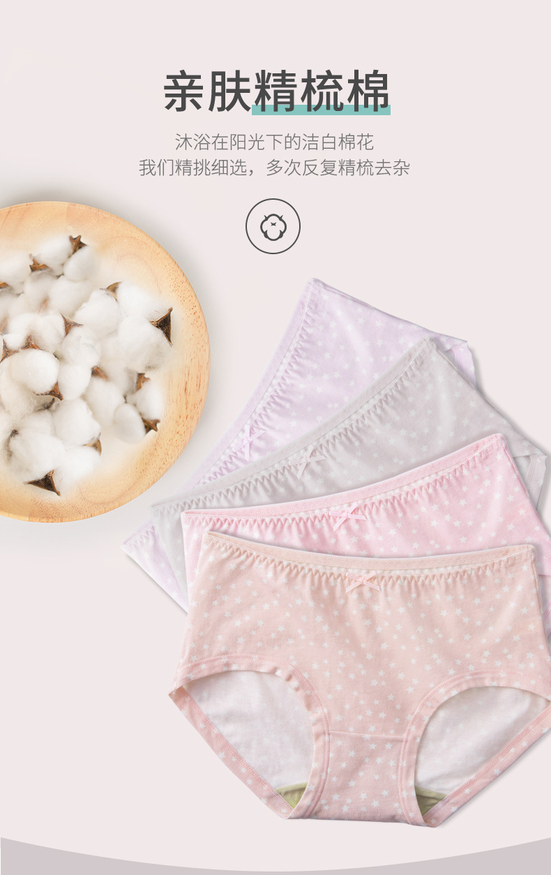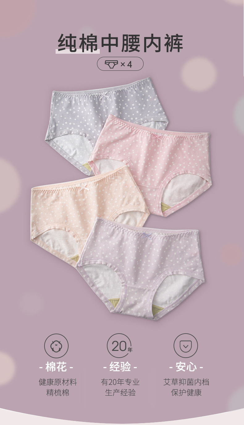 홍콩 샤 여성 속옷 면화 항균 크로트 소녀의 일본 중간 허리 귀여운 인쇄 브리프 편안한 통기성 바지