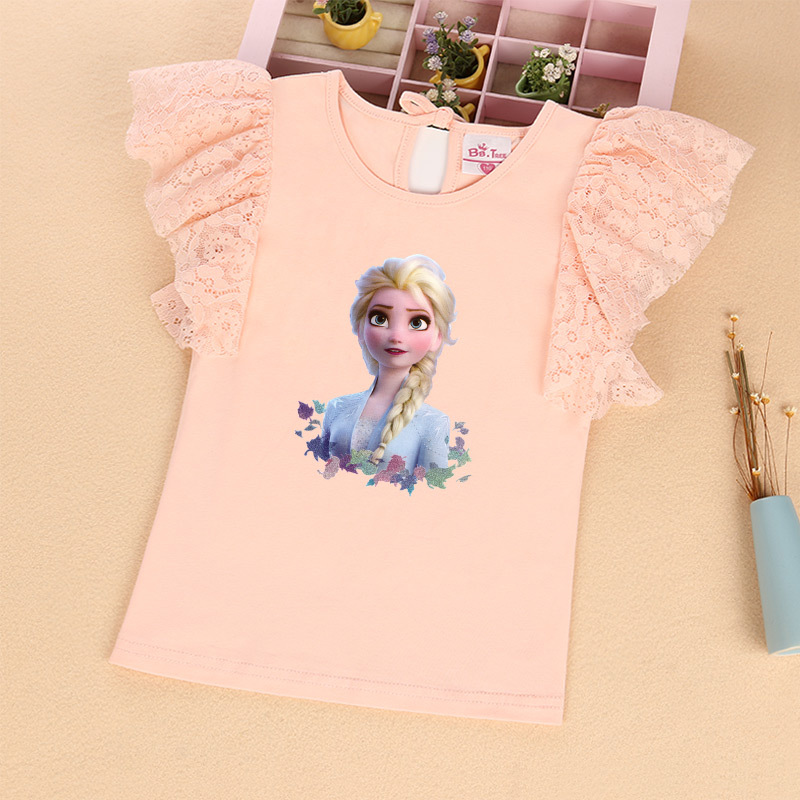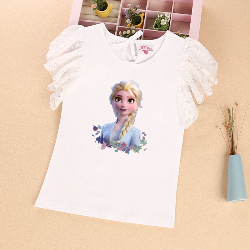 어린이 티셔츠 2020 여름 아동복 도매 냉동 공주 아이샤 소녀 반팔 레이스 소매 머리카락의 세대
