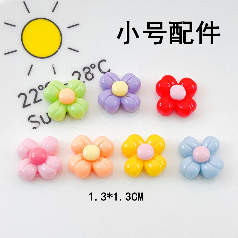 밝은 스몰 사이즈 네 꽃잎 꽃 우표 DIY 재료 크림 접착제 어린이 장난감 패치 헤어 액세서리 수지 액세서리스토어 가기