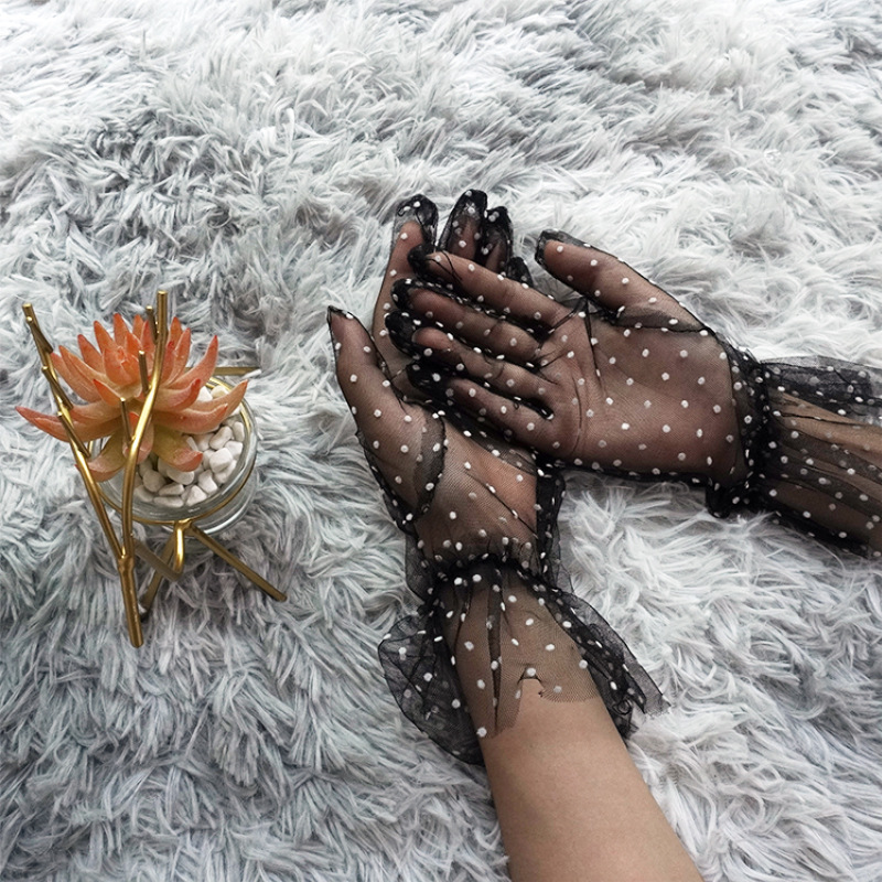 여름 장갑 여성용 레이스 태양 보호 장갑 스팟 사이클링 의류 짧은 얇은 메쉬 레이스 웨딩 장갑