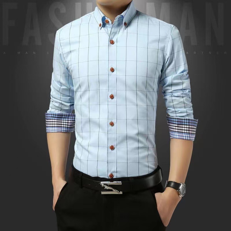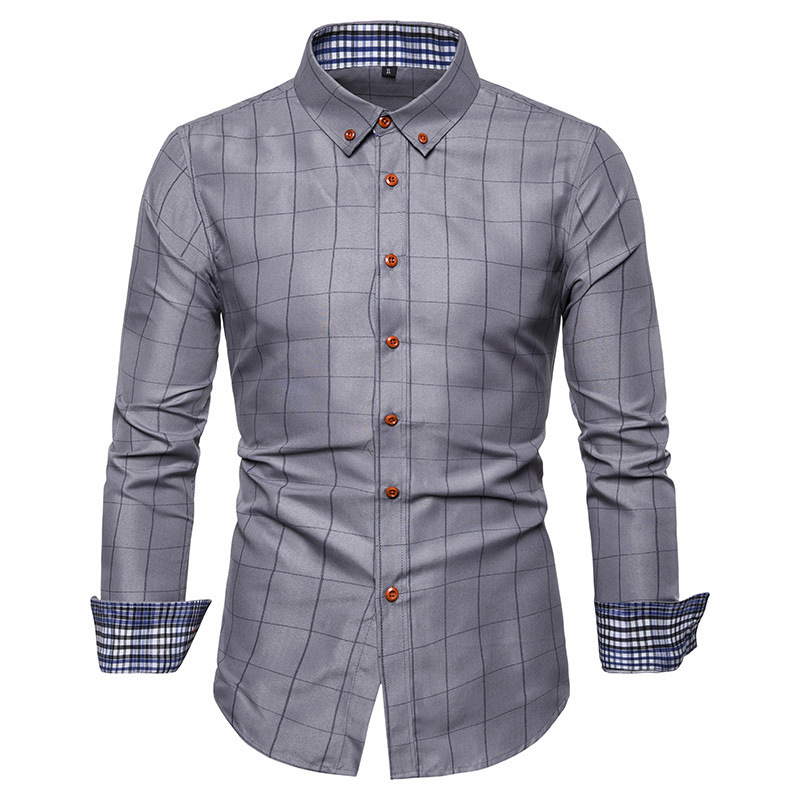 국경 간 2022 봄과 여름 대외 무역 유럽과 미국 남성 격자 무늬 긴 소매 셔츠 청소년 트렌드 느슨한 캐주얼 옷깃 셔츠스토어 가기