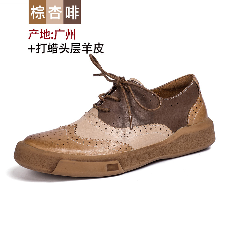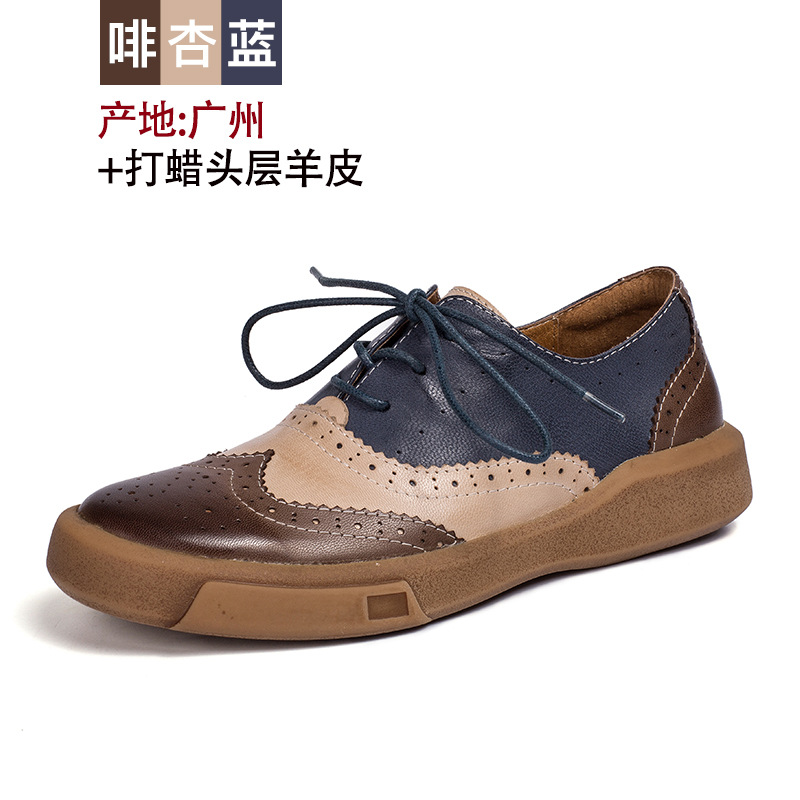 2022 봄과 가을 새로운 브록 옥스포드 여성 신발 라운드 토 양가죽 싱글 레이어 신발 모든 매치 영국 스타일 정품 가죽 신발 여성스토어 가기