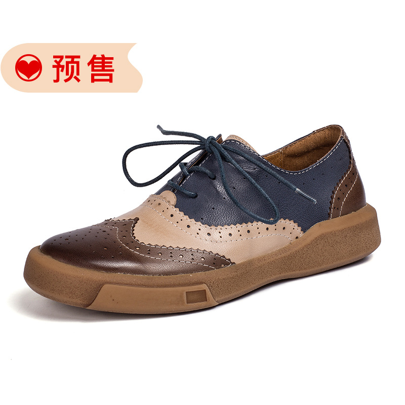 2022 봄과 가을 새로운 브록 옥스포드 여성 신발 라운드 토 양가죽 싱글 레이어 신발 모든 매치 영국 스타일 정품 가죽 신발 여성