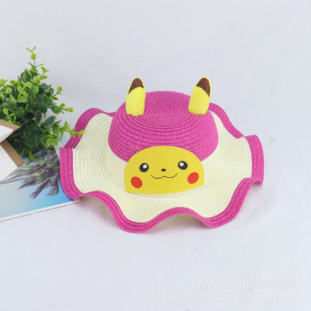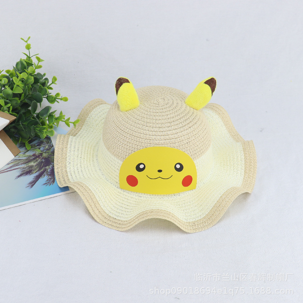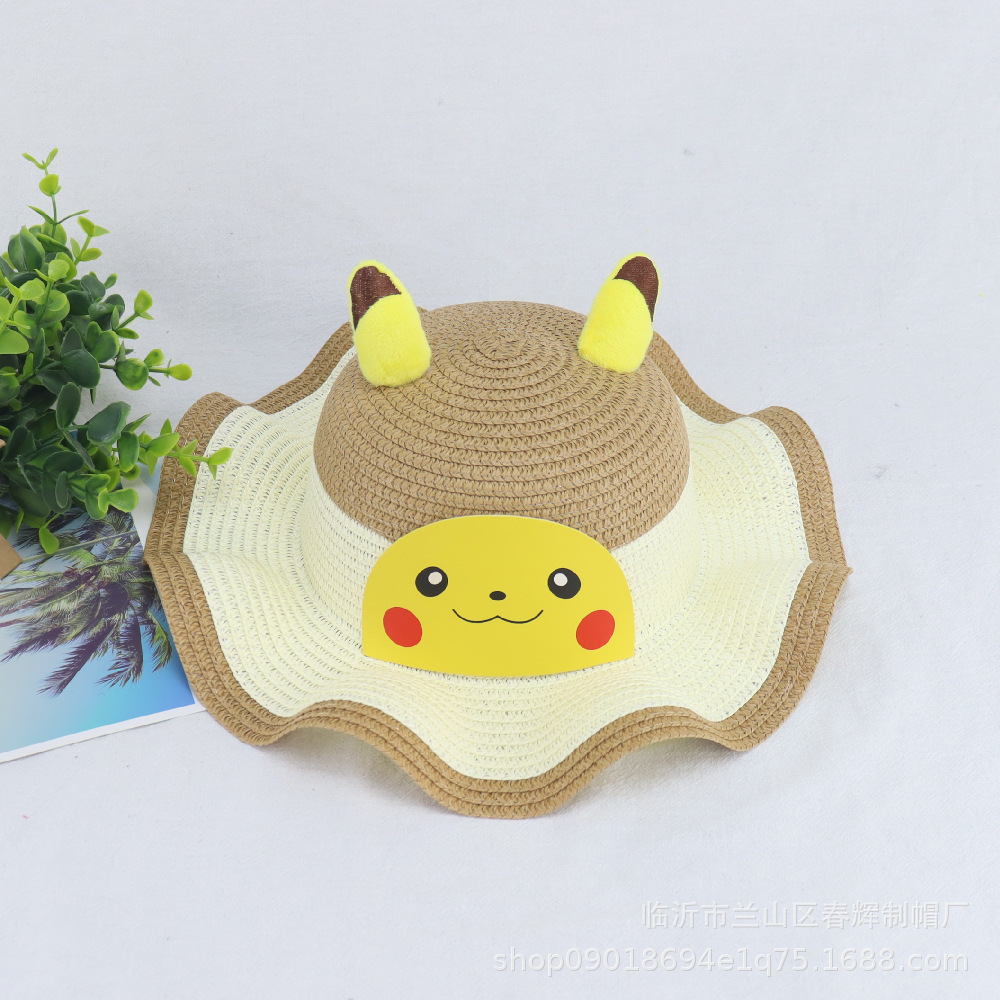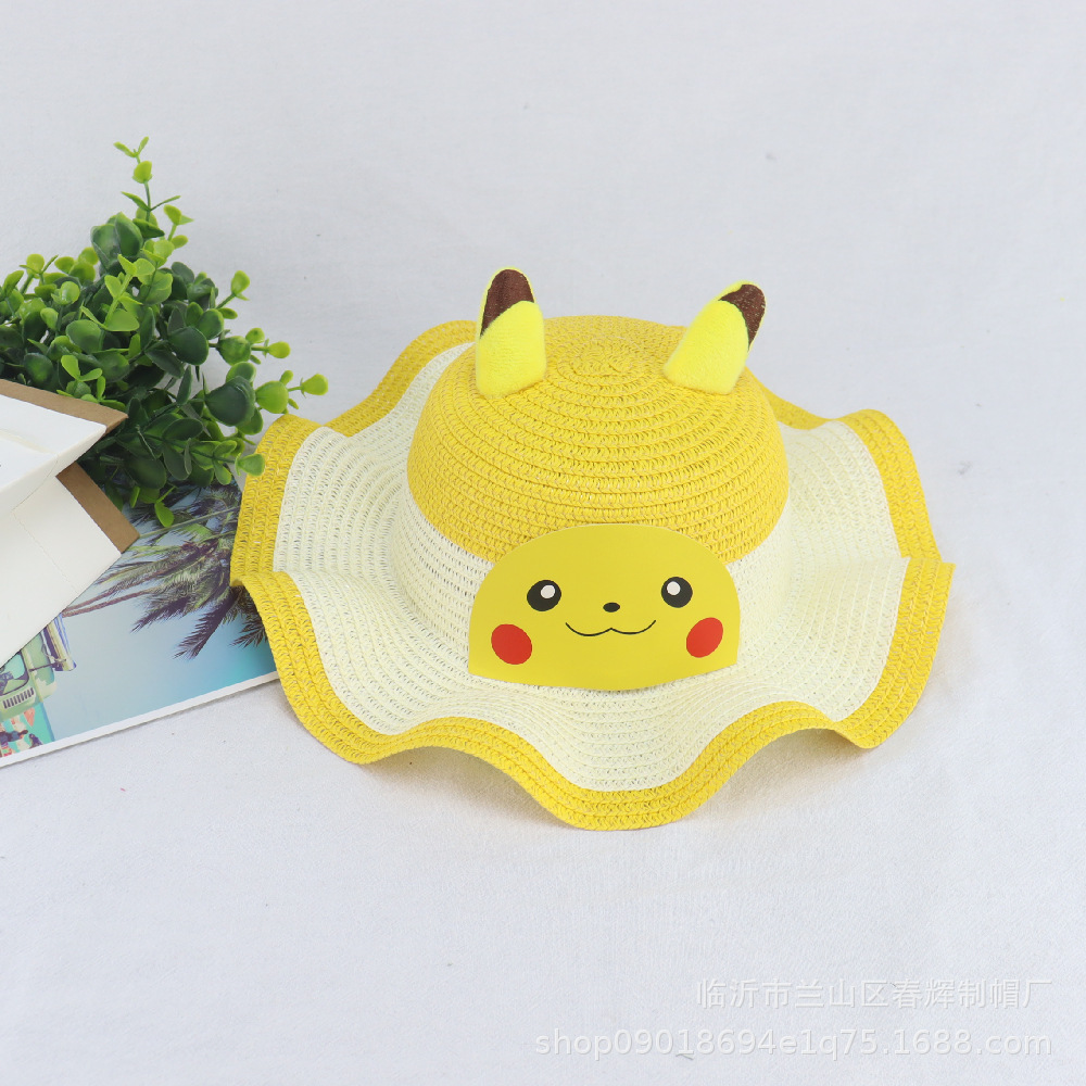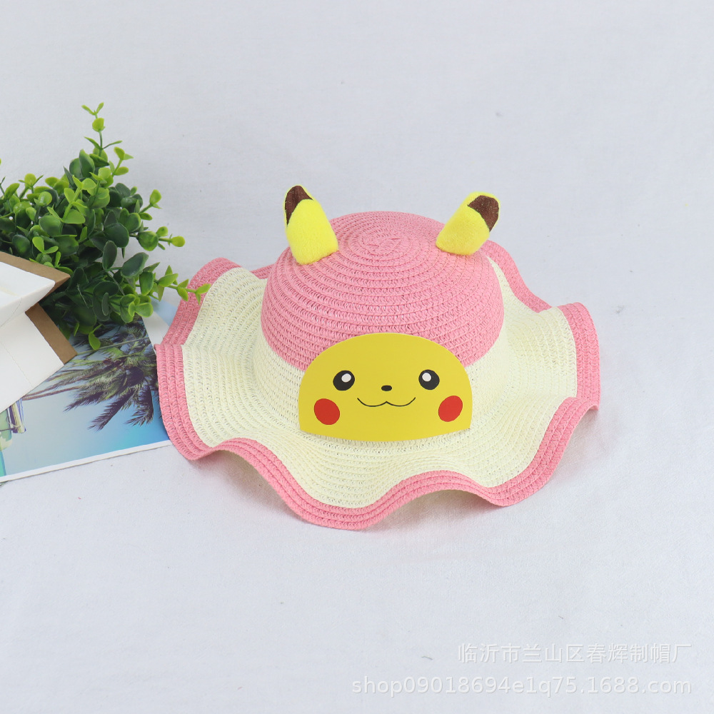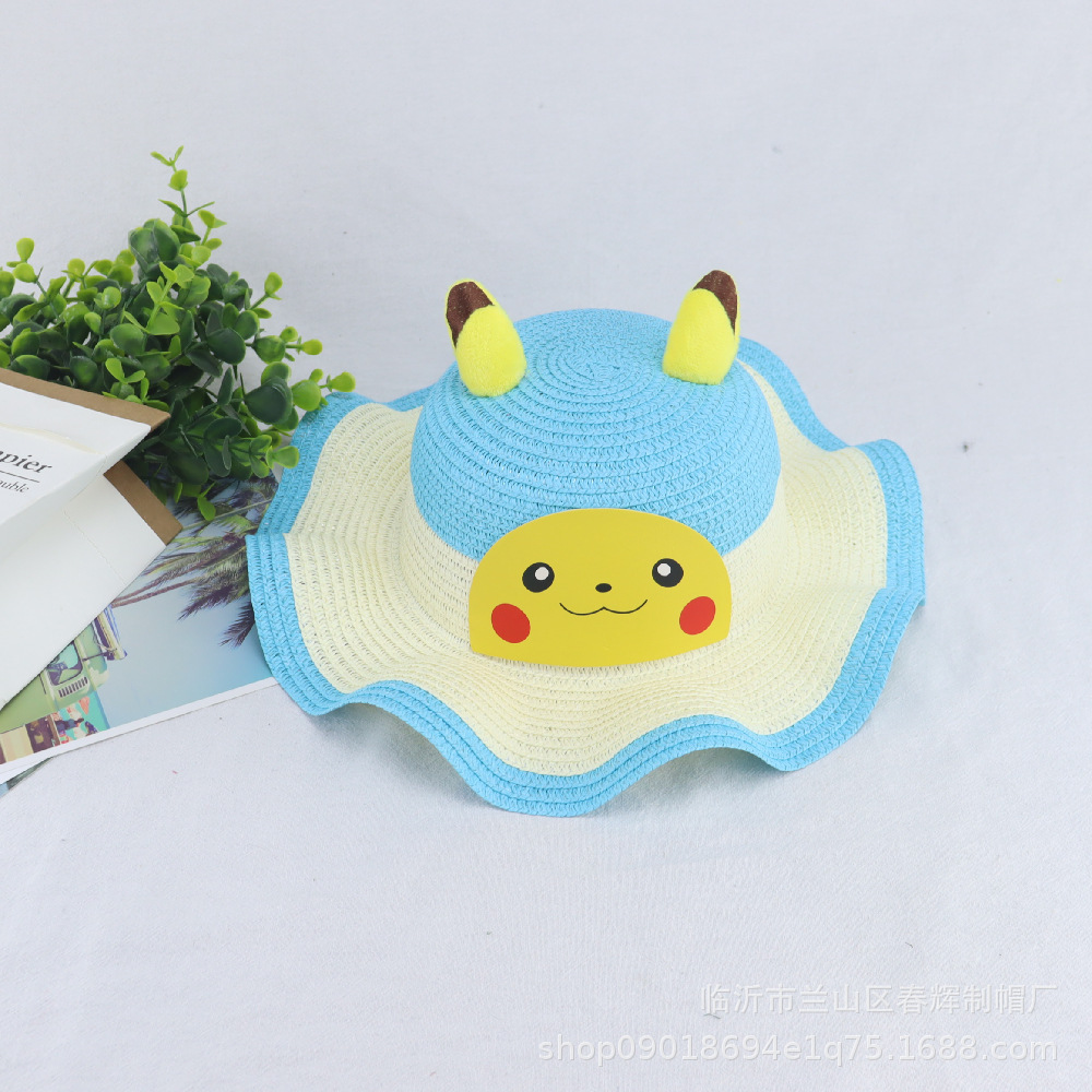 어린이 여름 양산 밀짚모자 아기 선크림 비치 모자 피카츄 웨이브 컬러 모자 공장 직매