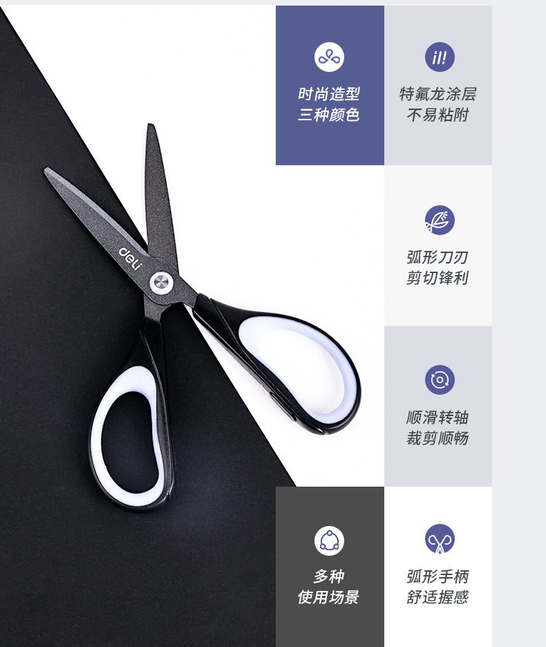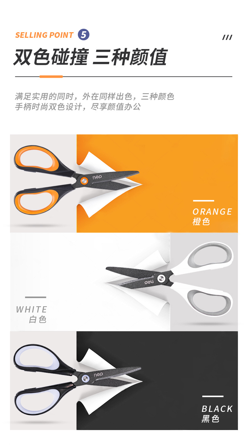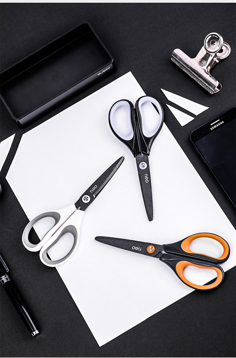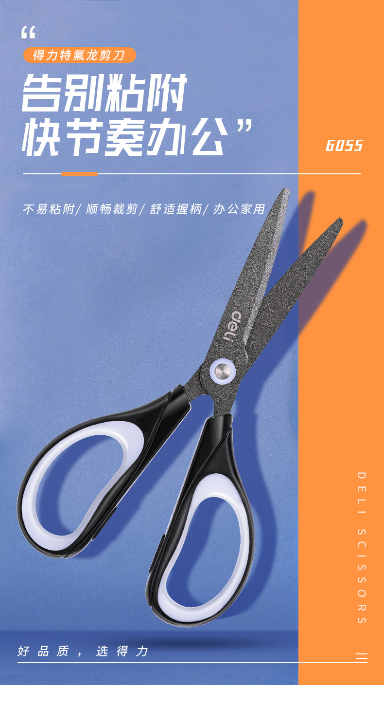 델리 가위 6055 테프론 도금 스테인레스 스틸 가위 사무실 재봉 절단 가위 가정용 학생 종이 절단 가위