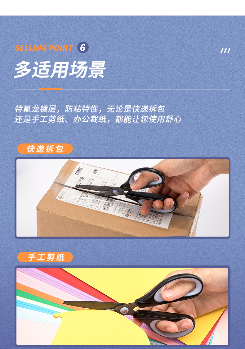 델리 가위 6055 테프론 도금 스테인레스 스틸 가위 사무실 재봉 절단 가위 가정용 학생 종이 절단 가위스토어 가기