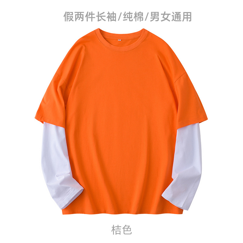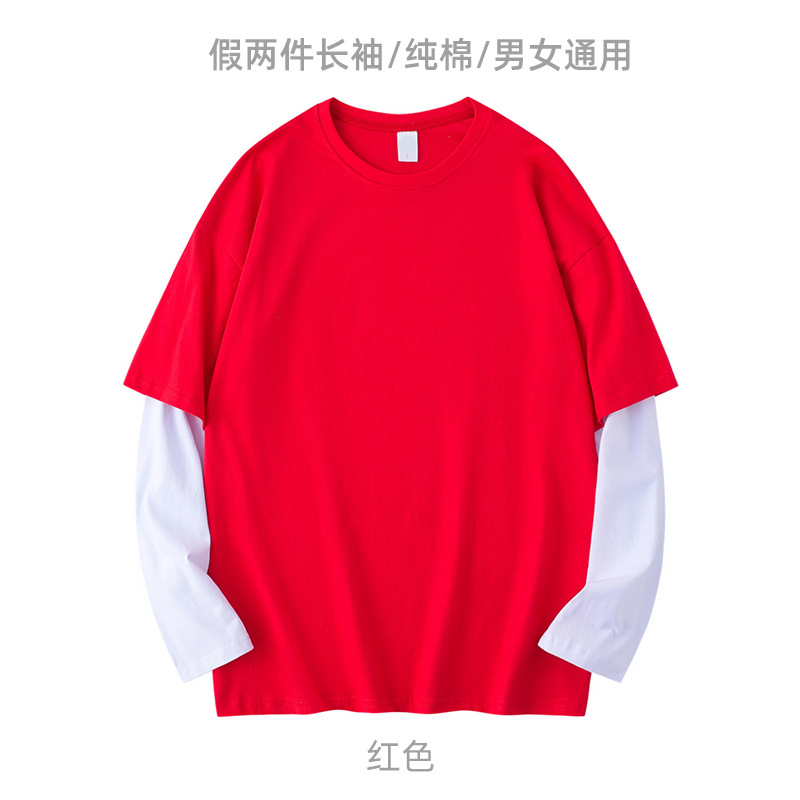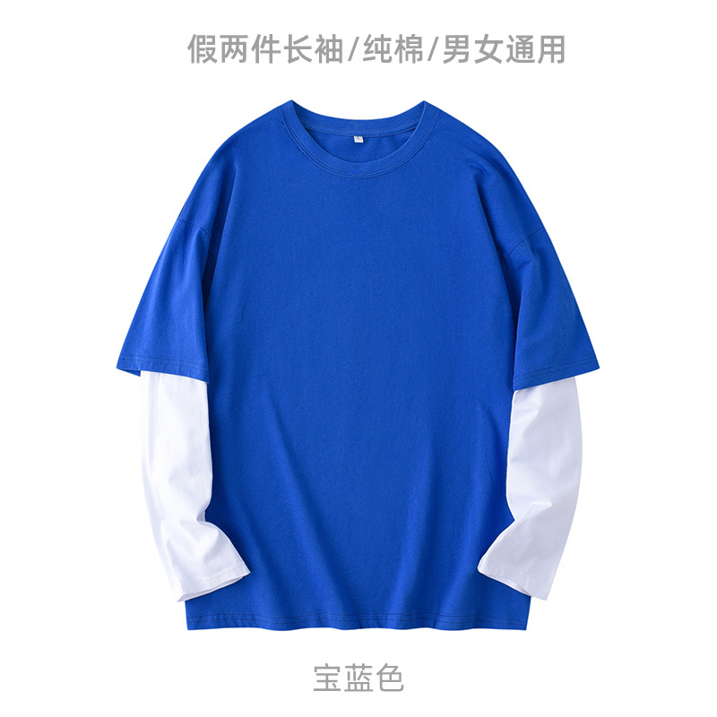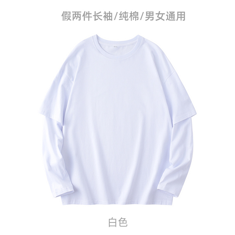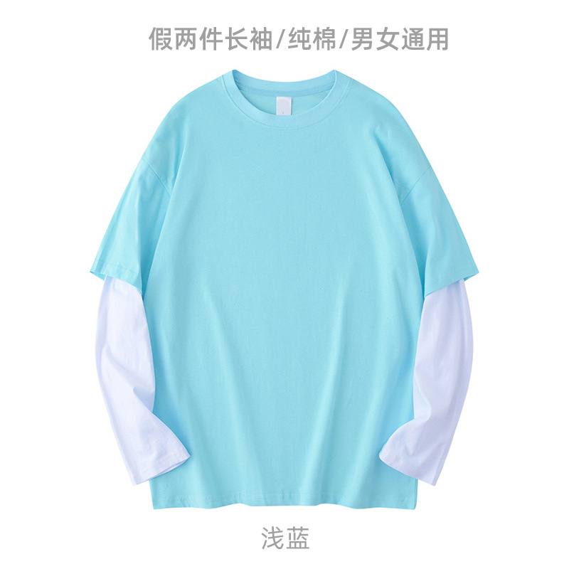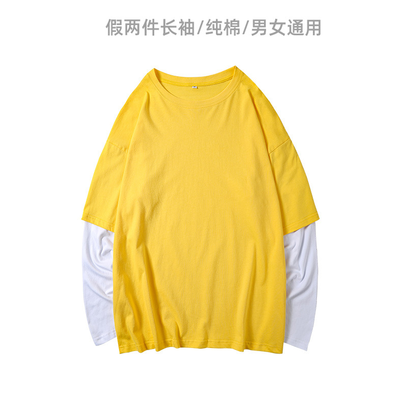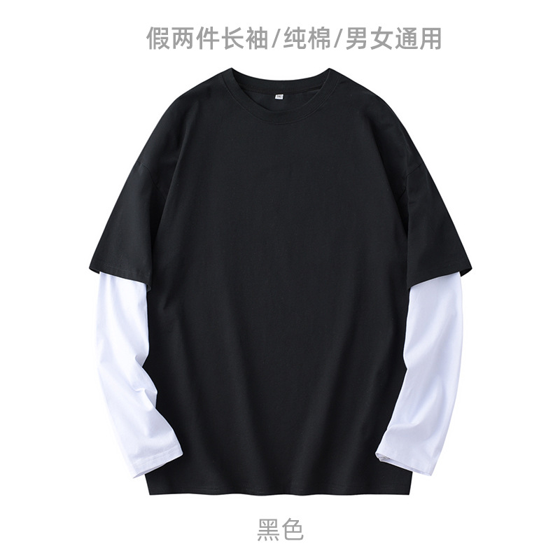 210g 여름 새로운 색상 매칭 느슨한면 티셔츠 남성용 가짜 2 단색 타이드 브랜드 선 스크린 느슨한 긴 소매 도매스토어 가기