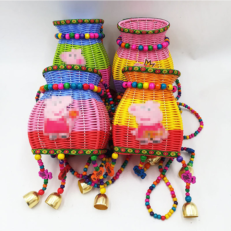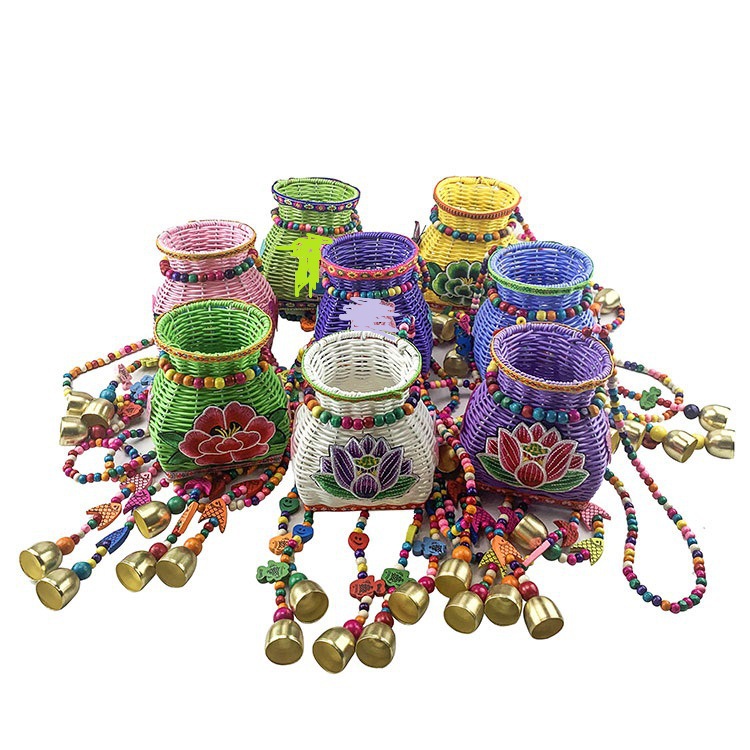 인터넷-유명한 구슬 색 작은 바구니 민족 자수 물고기 바구니 바람 차임 손으로 짠 플라스틱 등나무 어린이 바구니