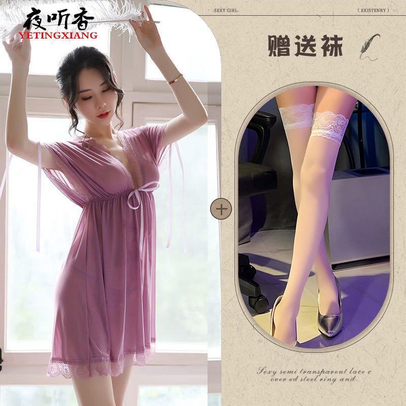 야간 청취 향수 섹시한 속옷 플러스 사이즈 통통녀 유럽과 미국의 섹시한 잠옷 관점 선택 유혹 재미 메쉬 실크 유혹 Nightdress스토어 가기