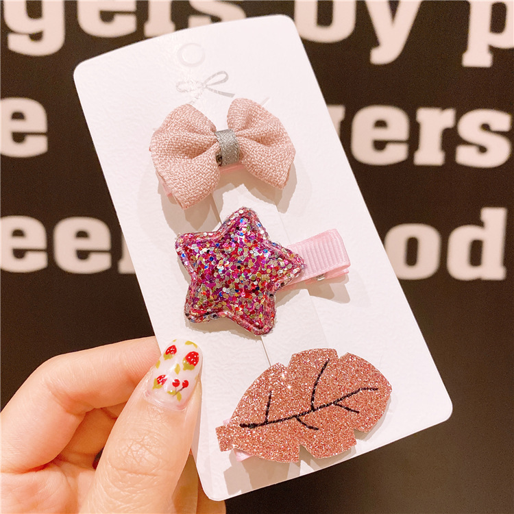 새로운 아기 머리 액세서리 앞머리 클립 여자 머리 클립 머리 장식 클립 한국 핑크 판지 세트 어린이 머리 클립