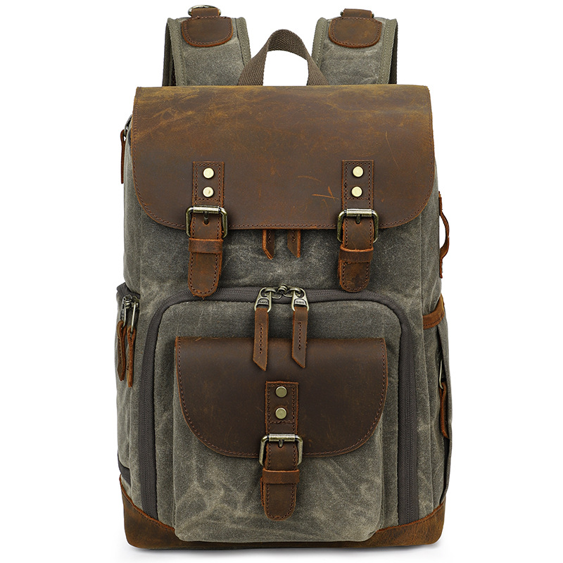 Wholesale Waterproof waxed canvas camera backpack with shockproof and high capacity liner