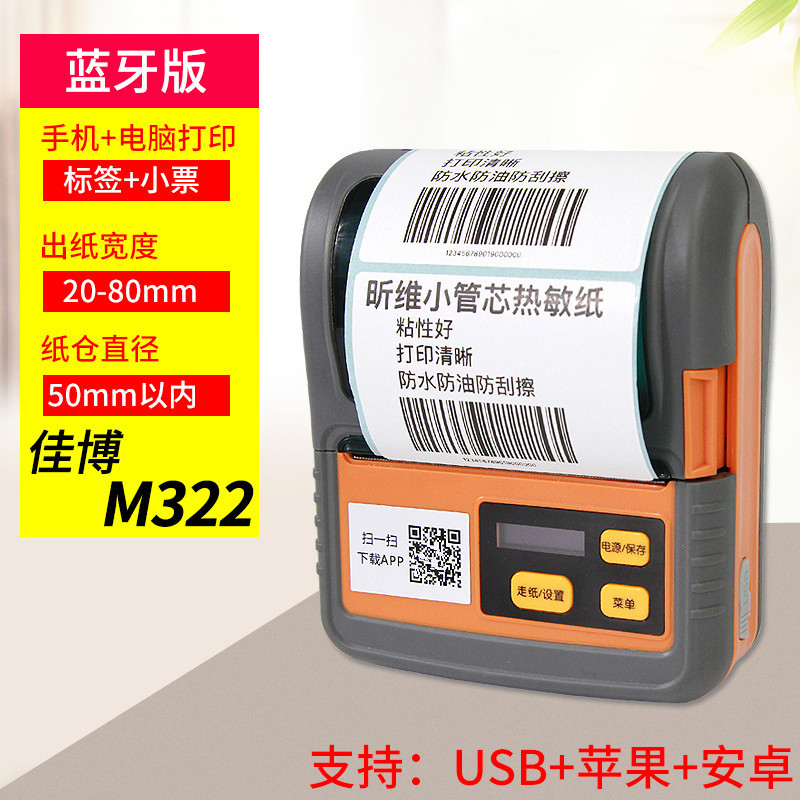 Jiabo M322 열 바코드 프린터 휴대 전화 블루투스 휴대용 M324 스티커 라벨 기계 M220스토어 가기