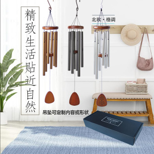 跨境北欧风情松木旋转18管风铃挂饰家居金属铝管装饰品节日礼物