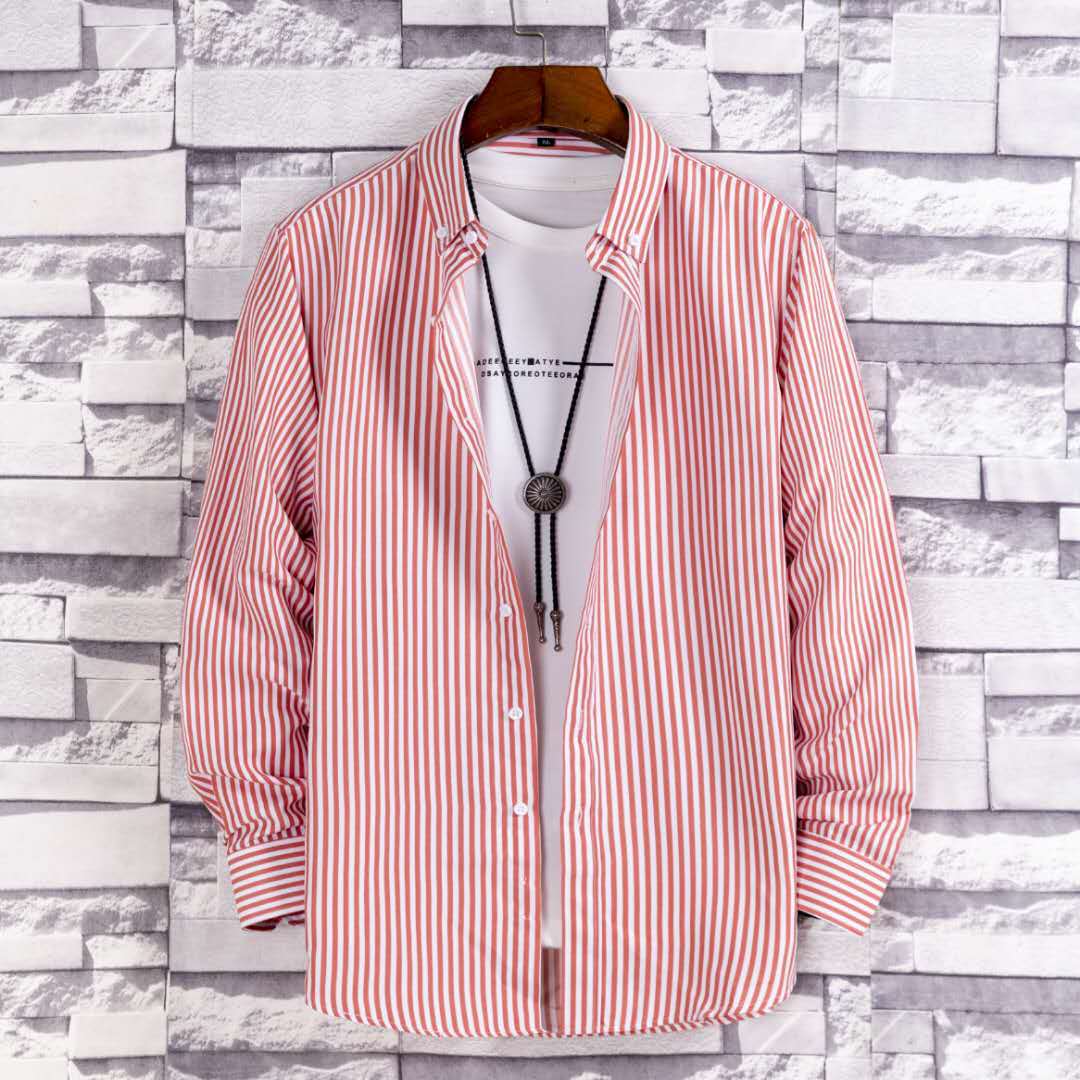 패션 스트라이프 인쇄 긴 소매 셔츠 도매 얇은 여름 패션 청소년 슬림 핏 셔츠 태양 보호 의류 트렌드 남성스토어 가기