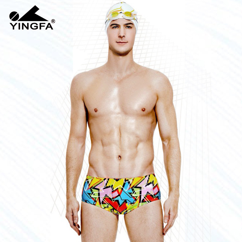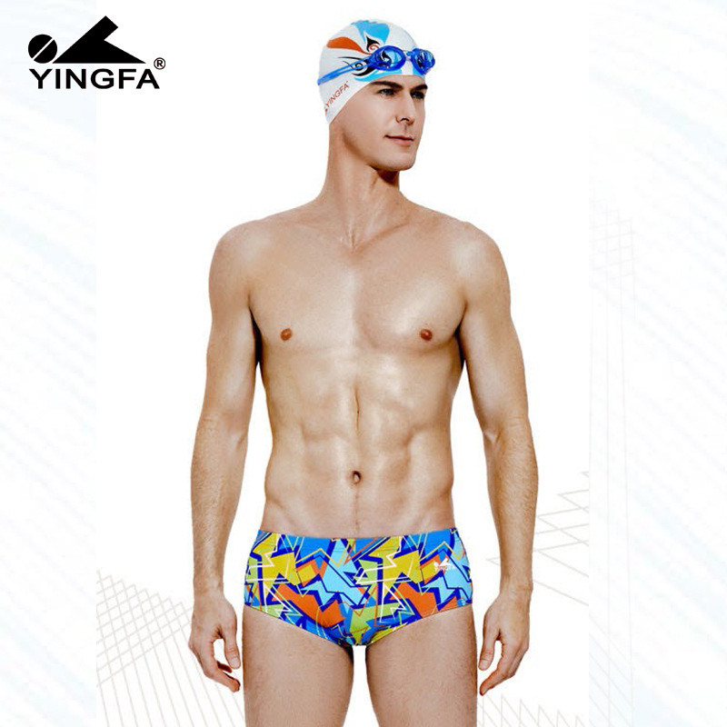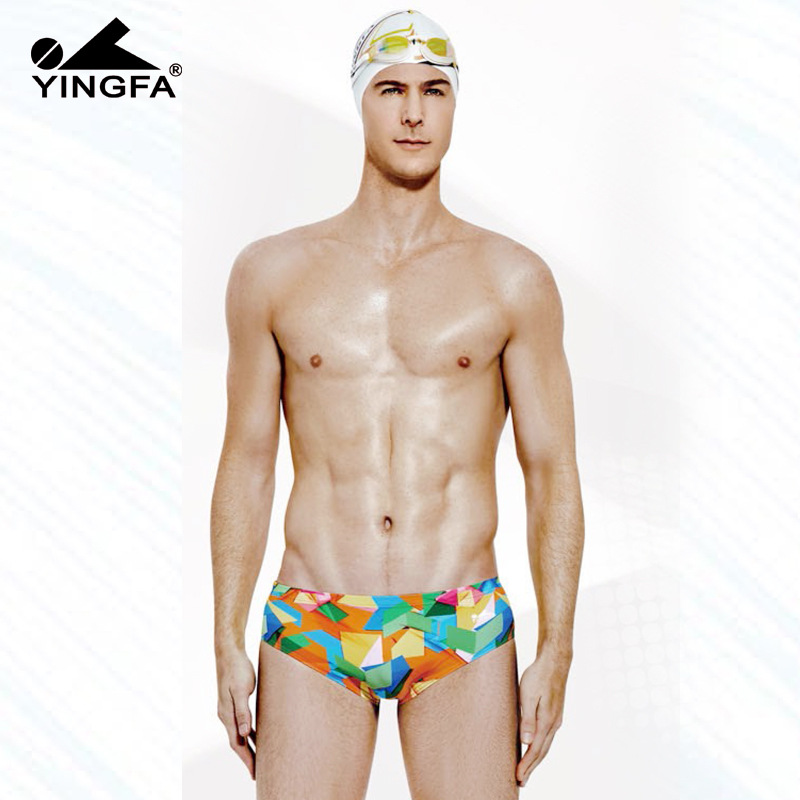 Yingfa 남자의 삼각형 수영 트렁크 훈련 대회 성인 어린이 훈련 인쇄 수영복 6700