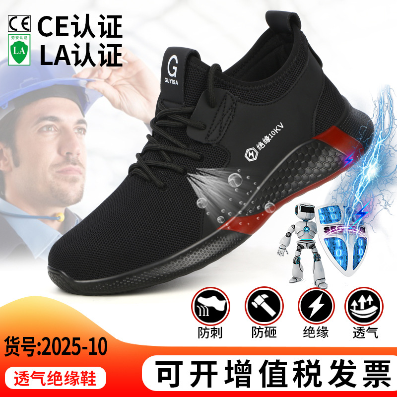 통기성 절연 신발, 충격 방지 및 찌르기 방지 플라스틱 발가락 전기 작업 보호 신발, 플라이 짠 절연 10KV 안전 신발 도매