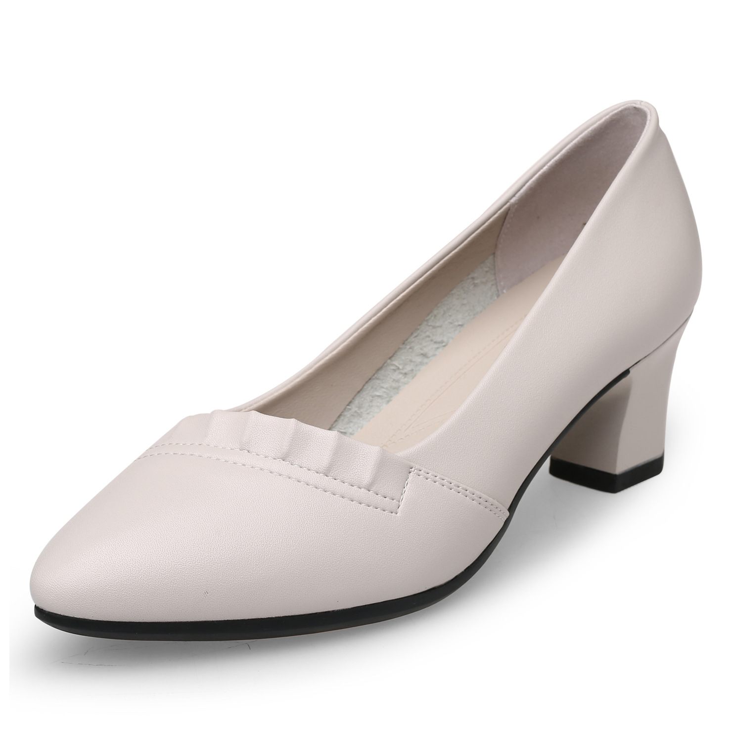 라운드 토 얕은 엄마 신발 부드러운 밑창 가죽 신발 중년 및 노인 남성용 청키 힐 싱글 레이어 신발 봄과 가을 여성 신발 모든 매치 작업 신발스토어 가기