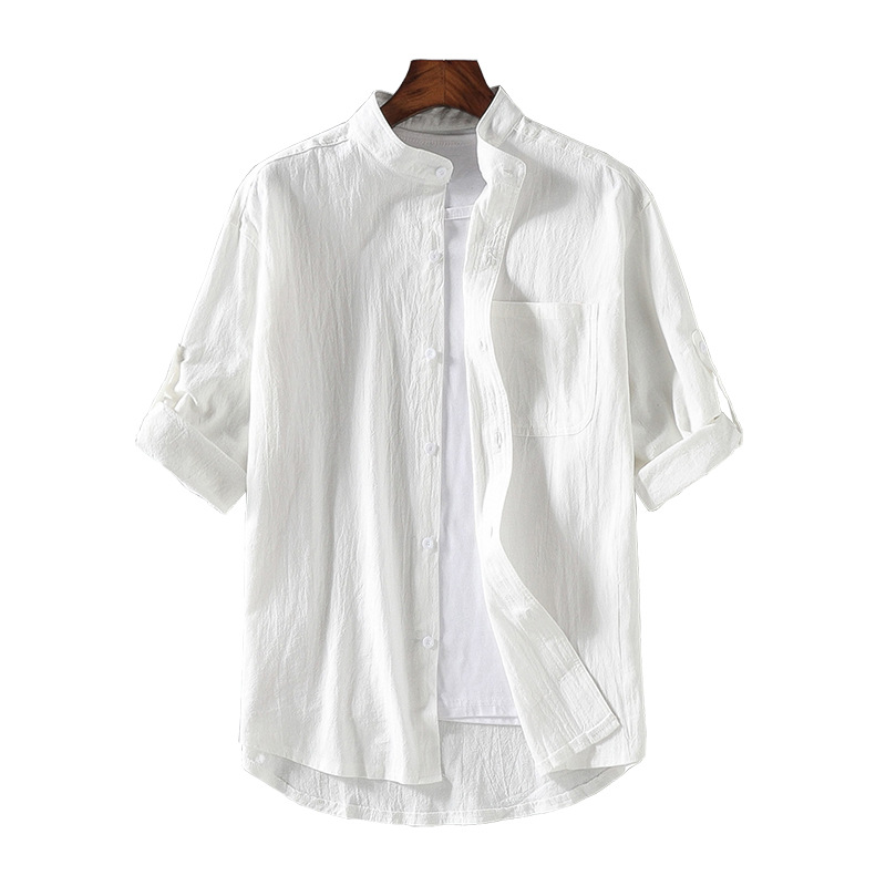 남자의 일본식 여름 린넨 반팔 셔츠 남자의 유행 브랜드 7 소매 통통 플러스 사이즈 한국 스타일 유행 셔츠