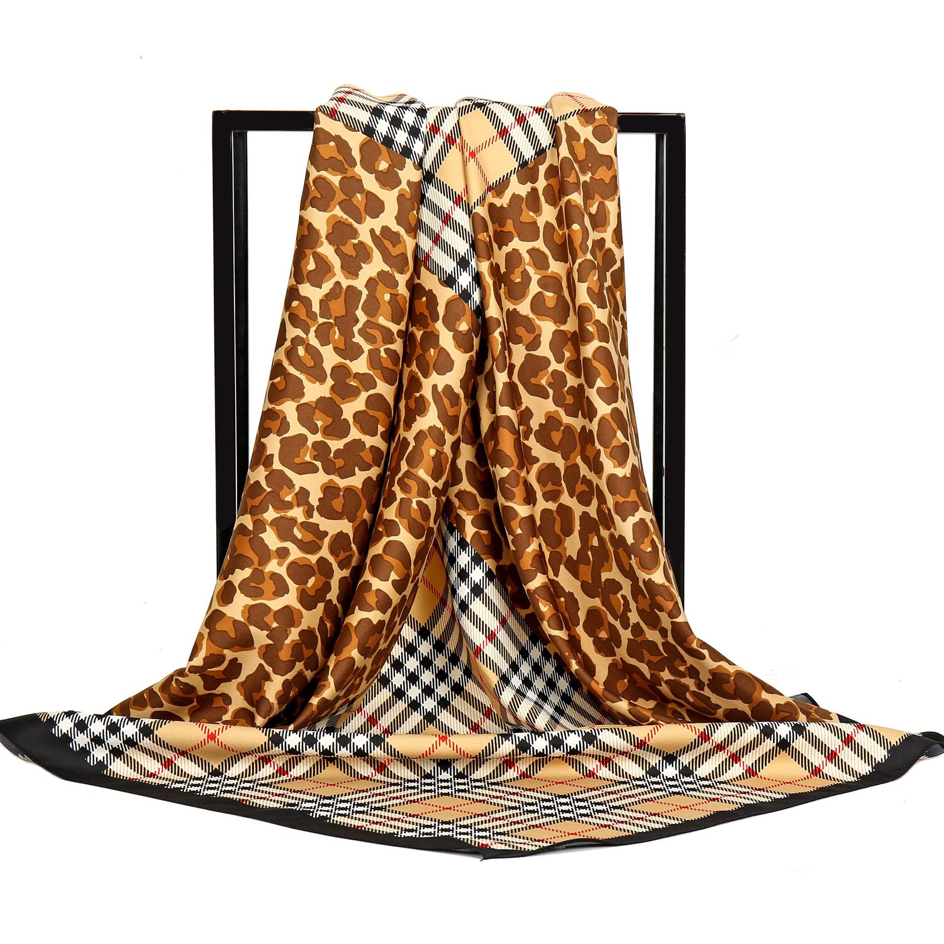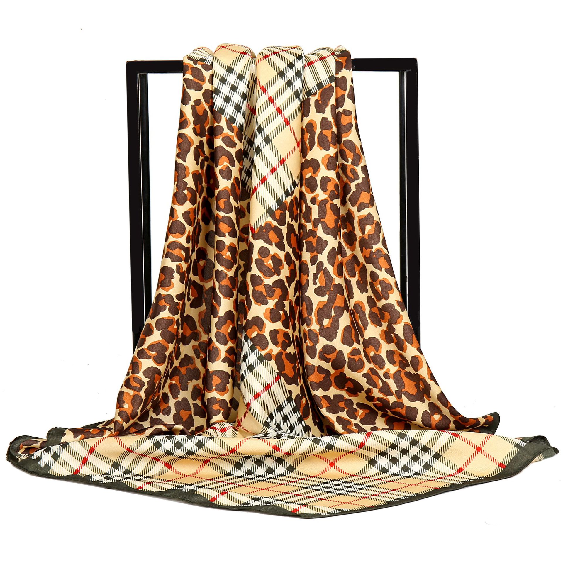 Gao He 패션 새로운 twill 프린트 스카프 90cm 대형 스퀘어 스카프 컬러 레오파드 스티칭 격자 무늬 여성용 스카프