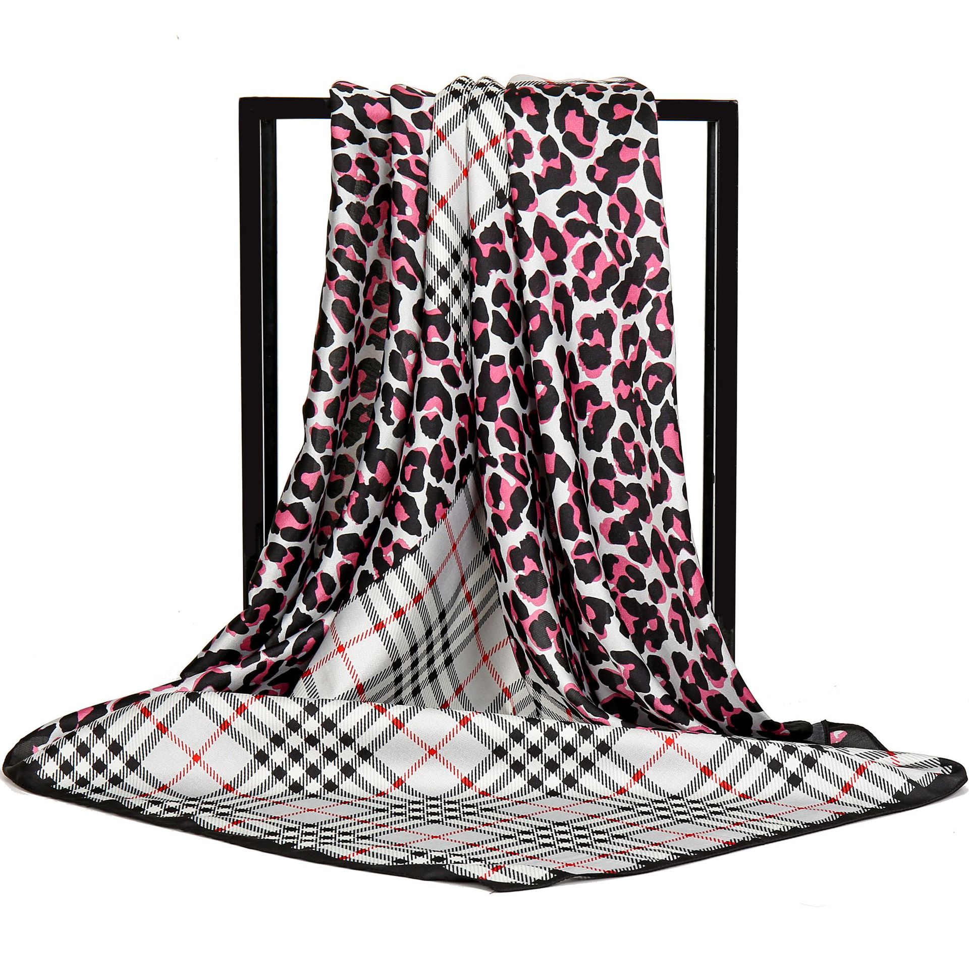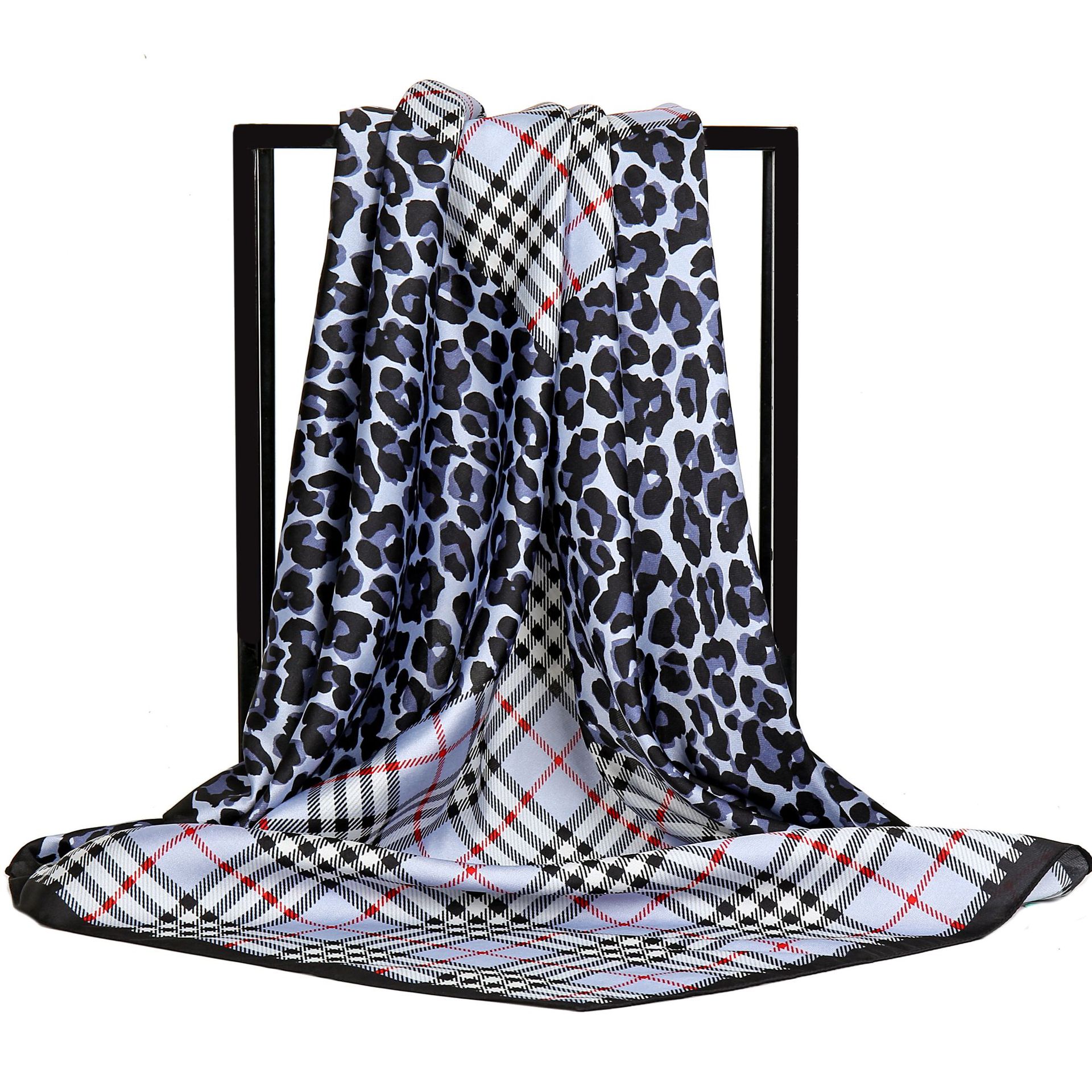 Gao He 패션 새로운 twill 프린트 스카프 90cm 대형 스퀘어 스카프 컬러 레오파드 스티칭 격자 무늬 여성용 스카프스토어 가기