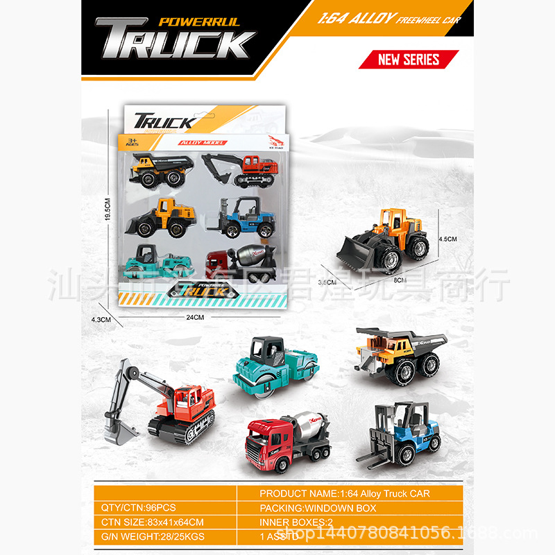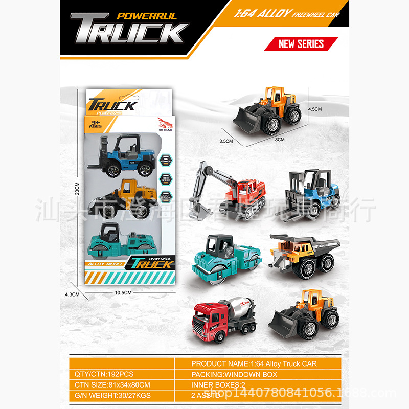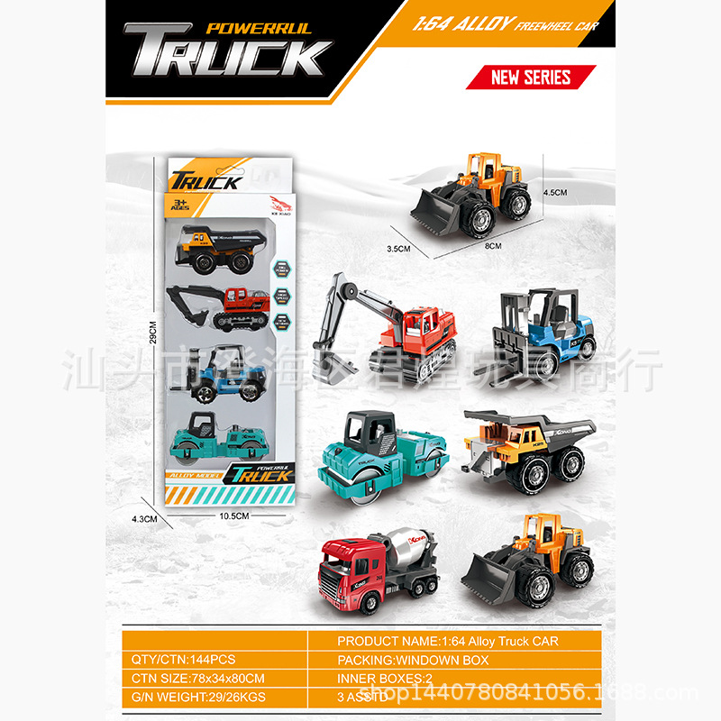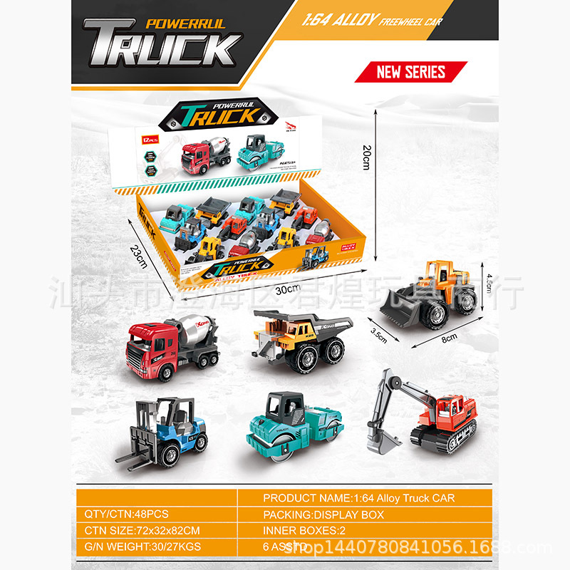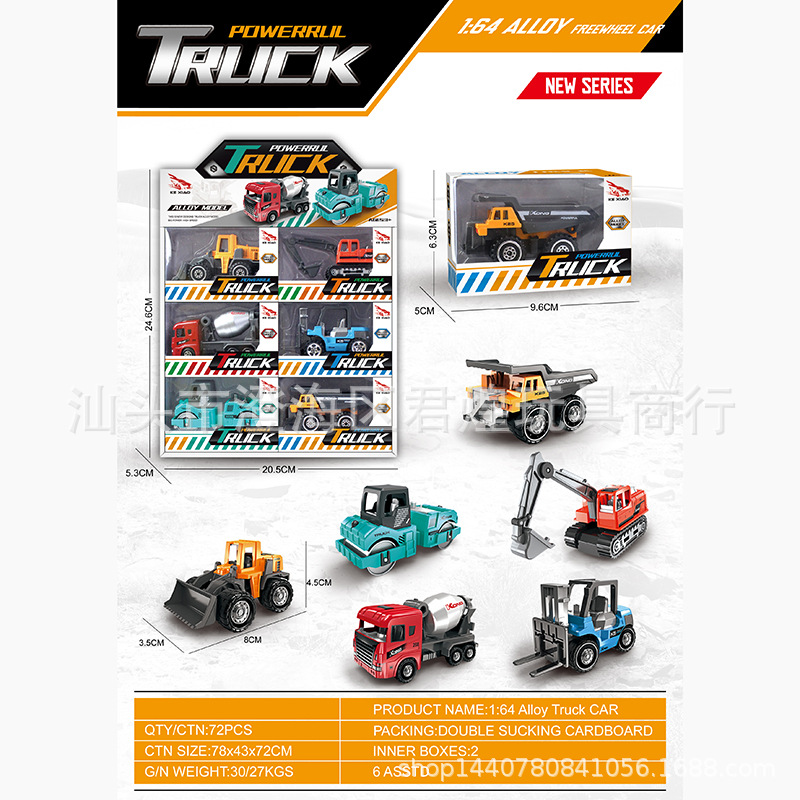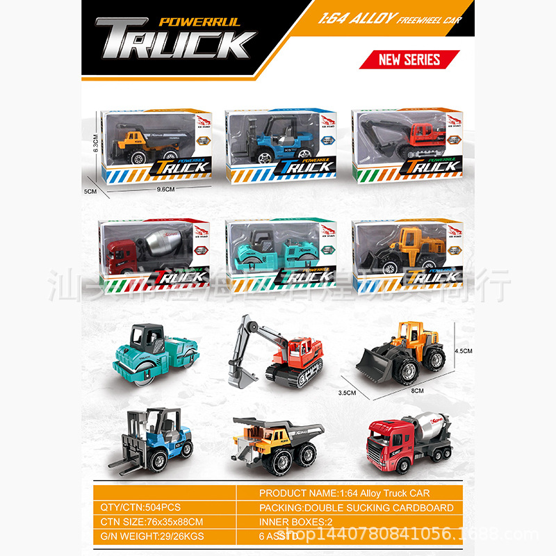 1:64滑行工程合金车模套装 合金迷你仿真工程车 儿童滑行玩具车