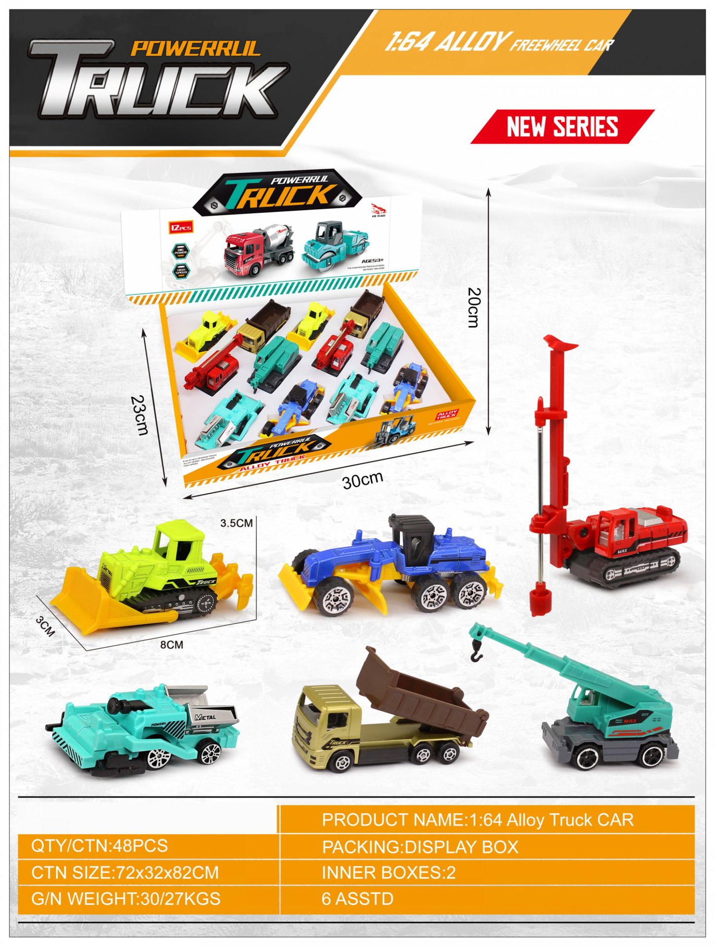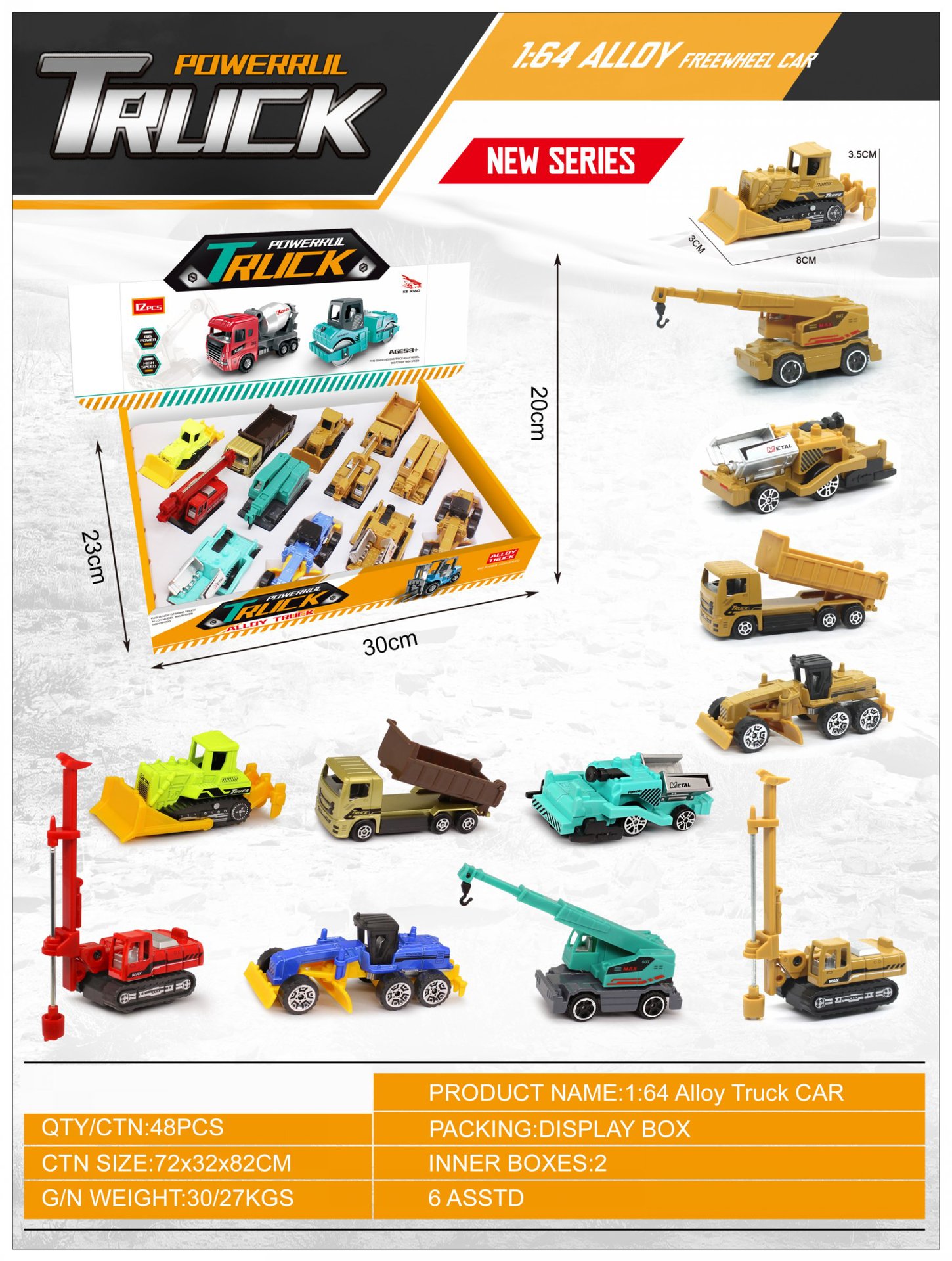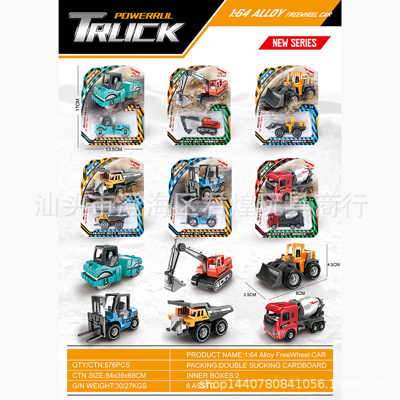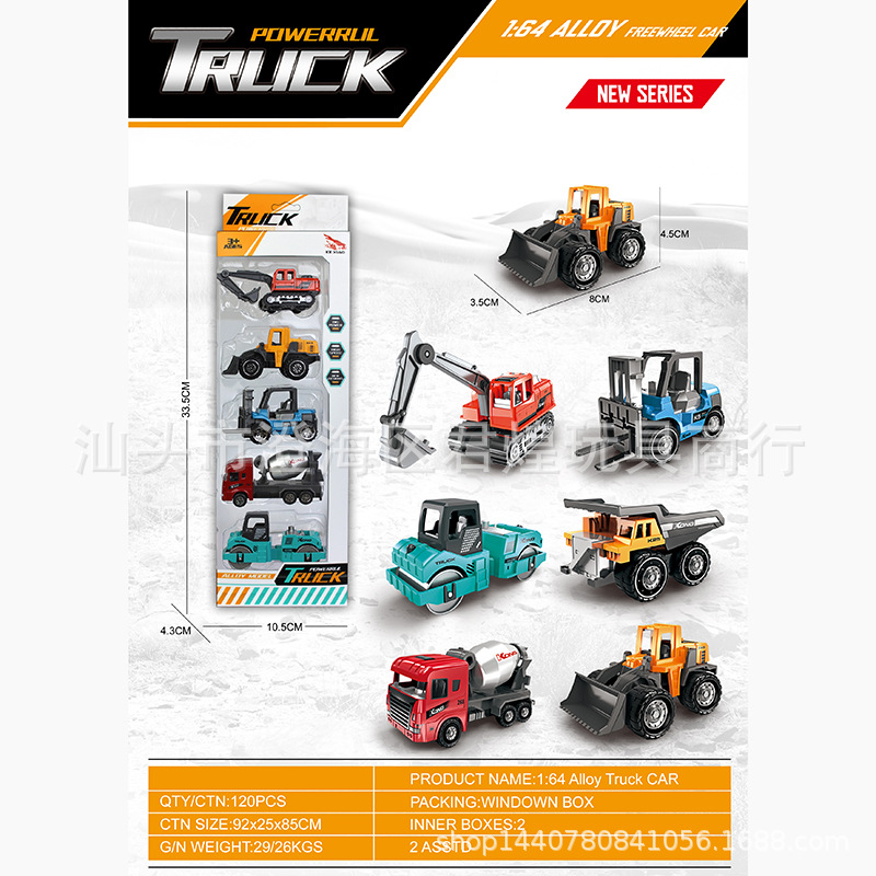 1:64滑行工程合金车模套装 合金迷你仿真工程车 儿童滑行玩具车