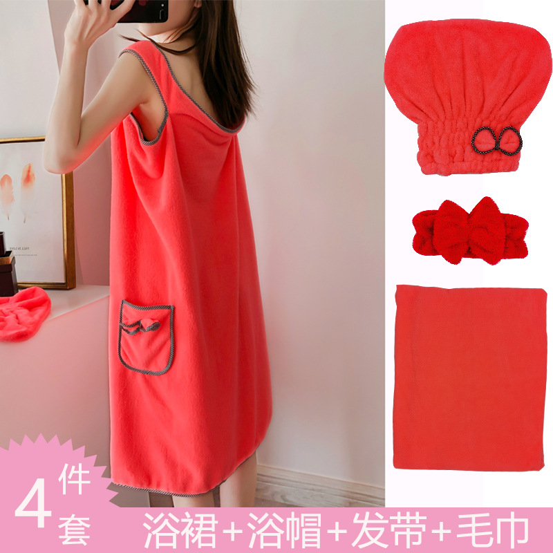 공장 산호 양털 목욕 치마 두꺼운 숙녀 가슴 끈 마술 목욕 수건 성인 해변 수건 샤워 모자 세트 착용 할 수 있습니다스토어 가기